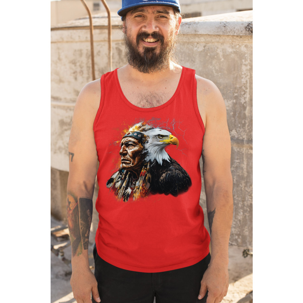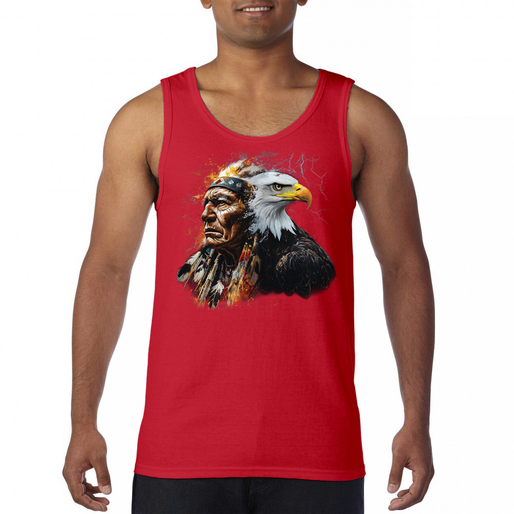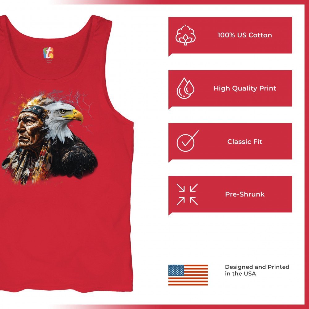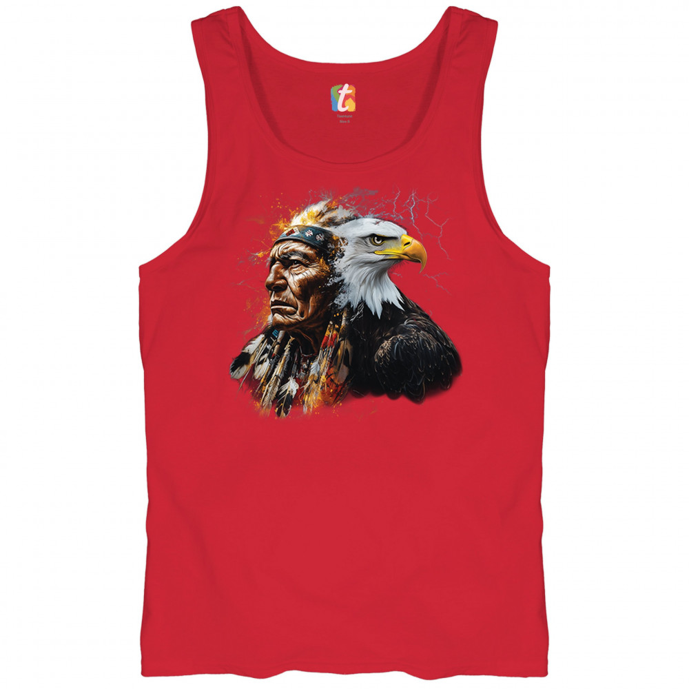 Bold tribal totem design with Native chief, eagle, lightning, and fire. A fierce blend of spirit, power, and cultural pride in one image.