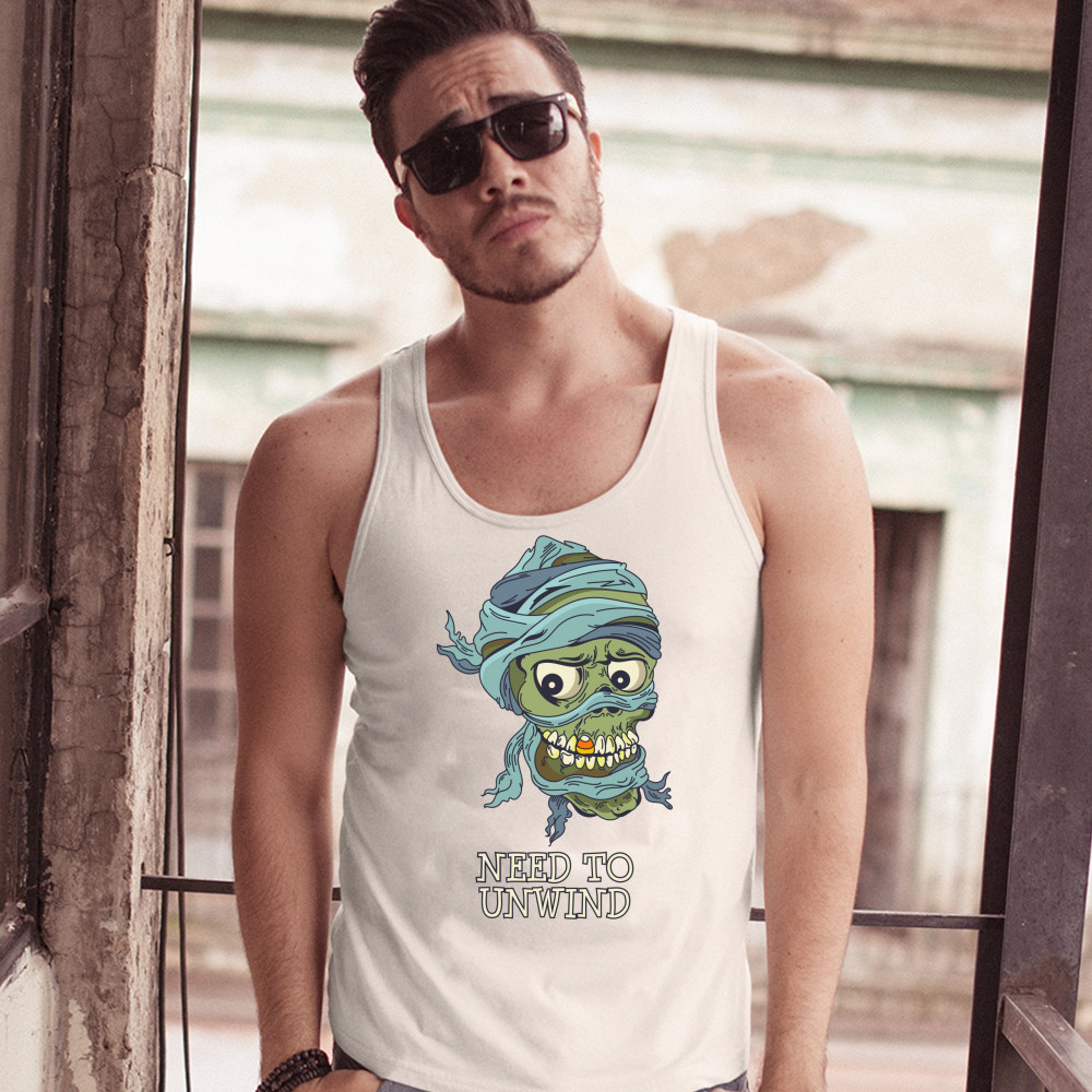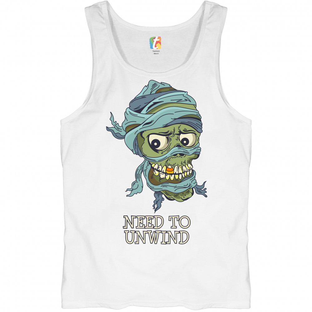 NEED TO UNWIND tank top funny halloween zombie trick-or-treat men's top white