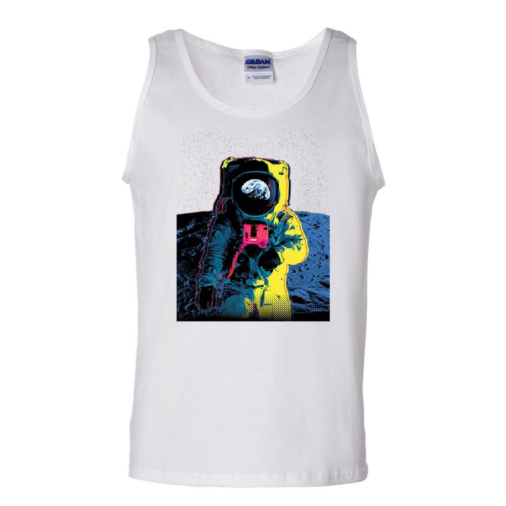 NEON ASTRONAUT tank top moon landing space travel universe earth sleeveless white