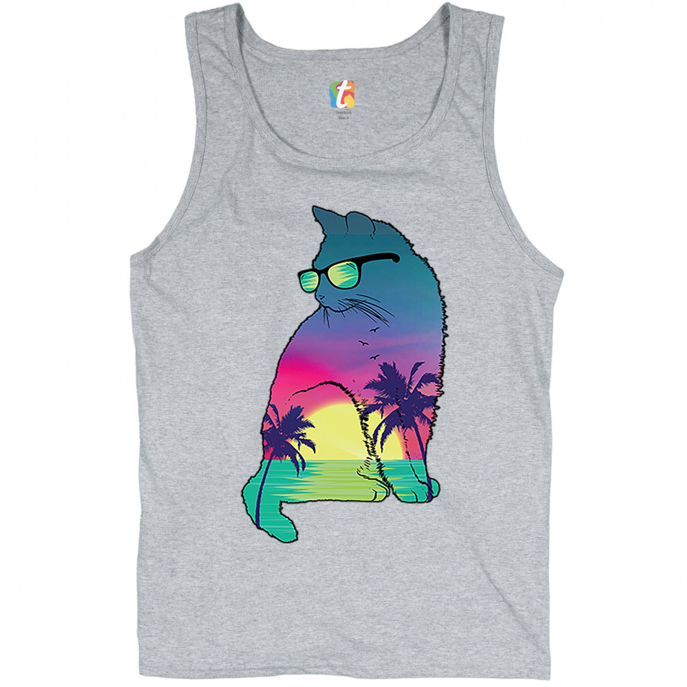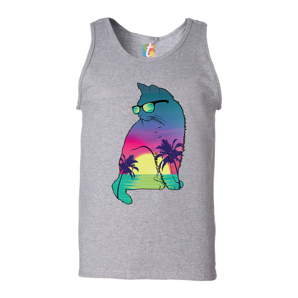 NEON CAT IN SUNGLASSES tank top tropic kitten summer beach kitty men's top gray