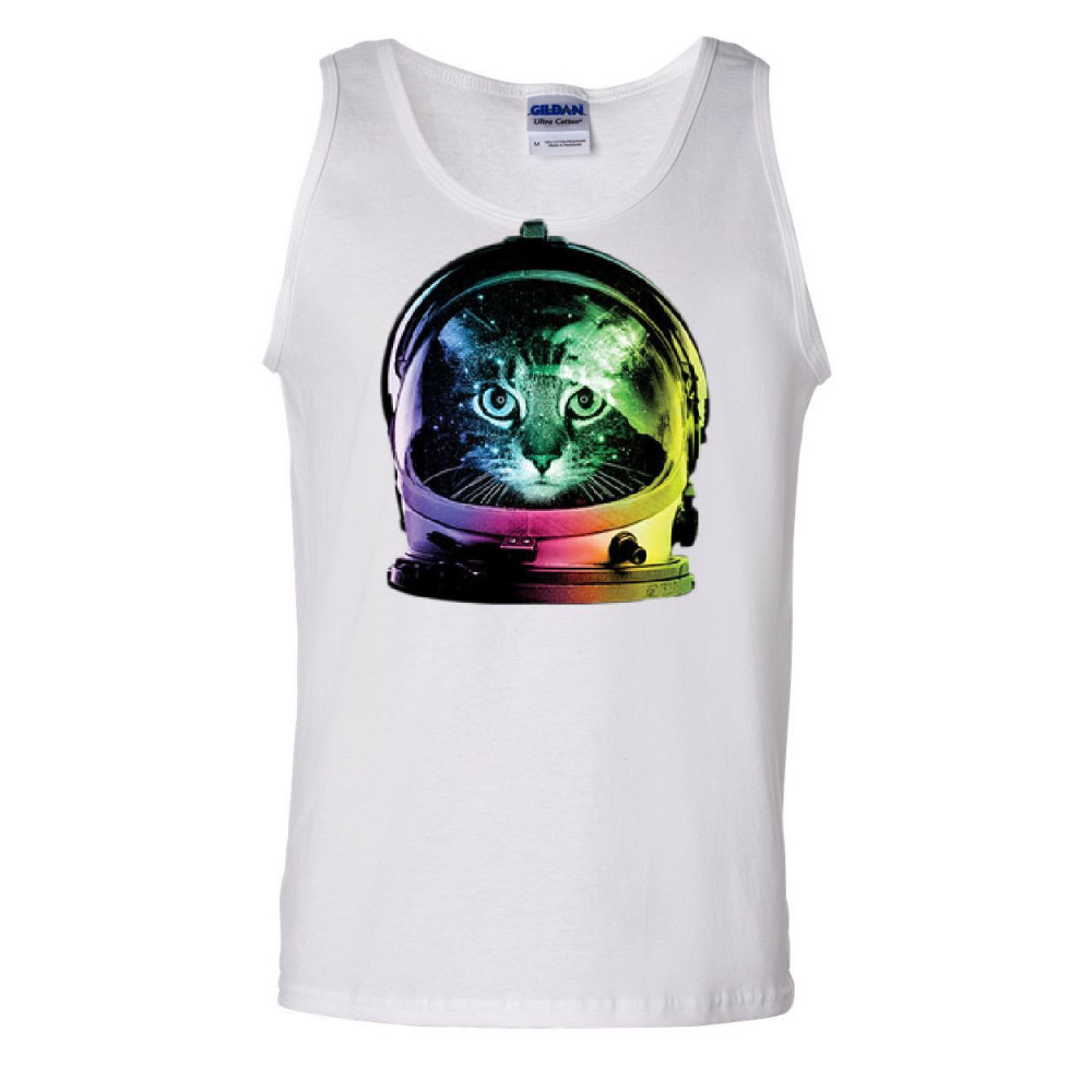 SPACE CAT tank top astronaut kitten neon galaxy white