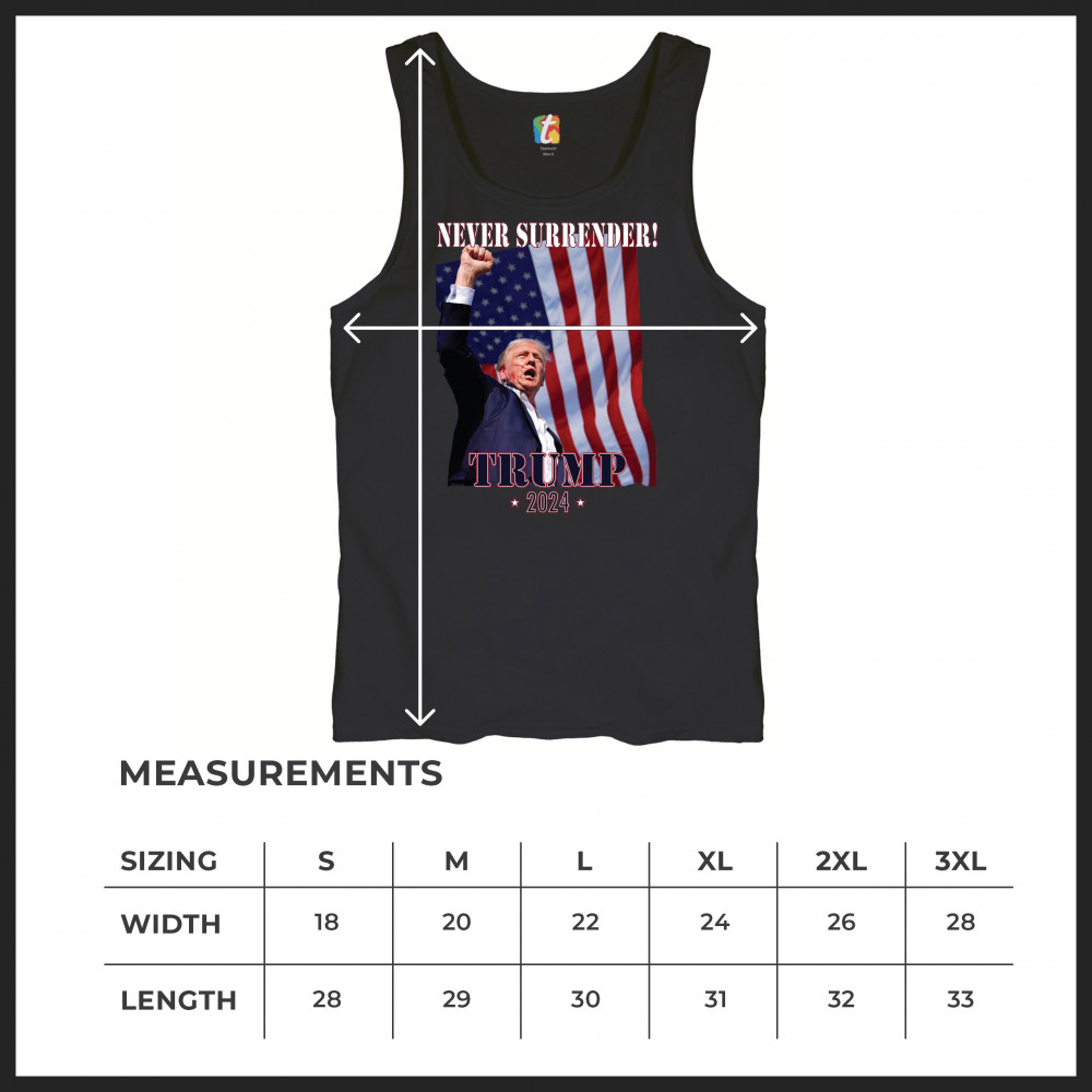 Celebrate your patriotic spirit and political stance with our "Never Surrender! Trump 2024" design. This powerful graphic showcases Donald Trump with a raised fist against the backdrop of the American flag, symbolizing resilience and determination. Ideal for rallies, events, and everyday wear, this design is crafted from premium materials for comfort and durability. Stand out and show your support for America's future with this striking and bold statement piece, perfect for any proud Trump supporter.