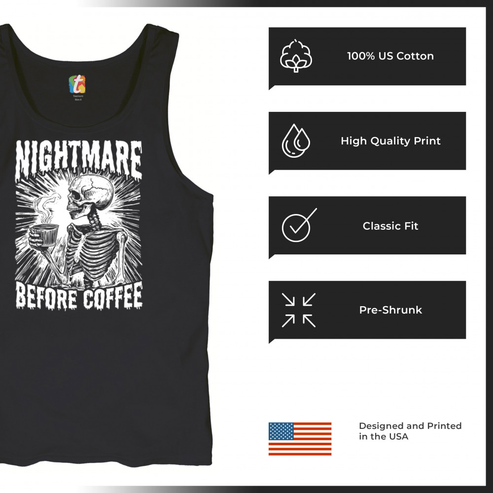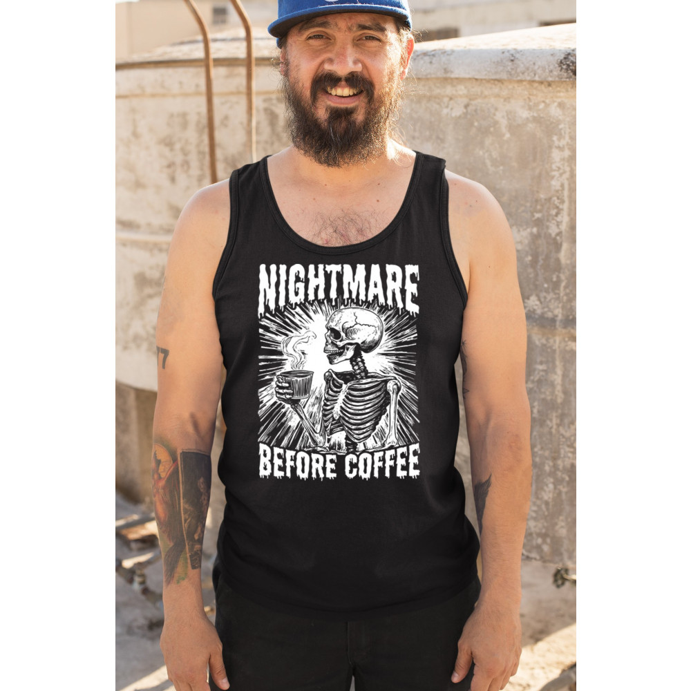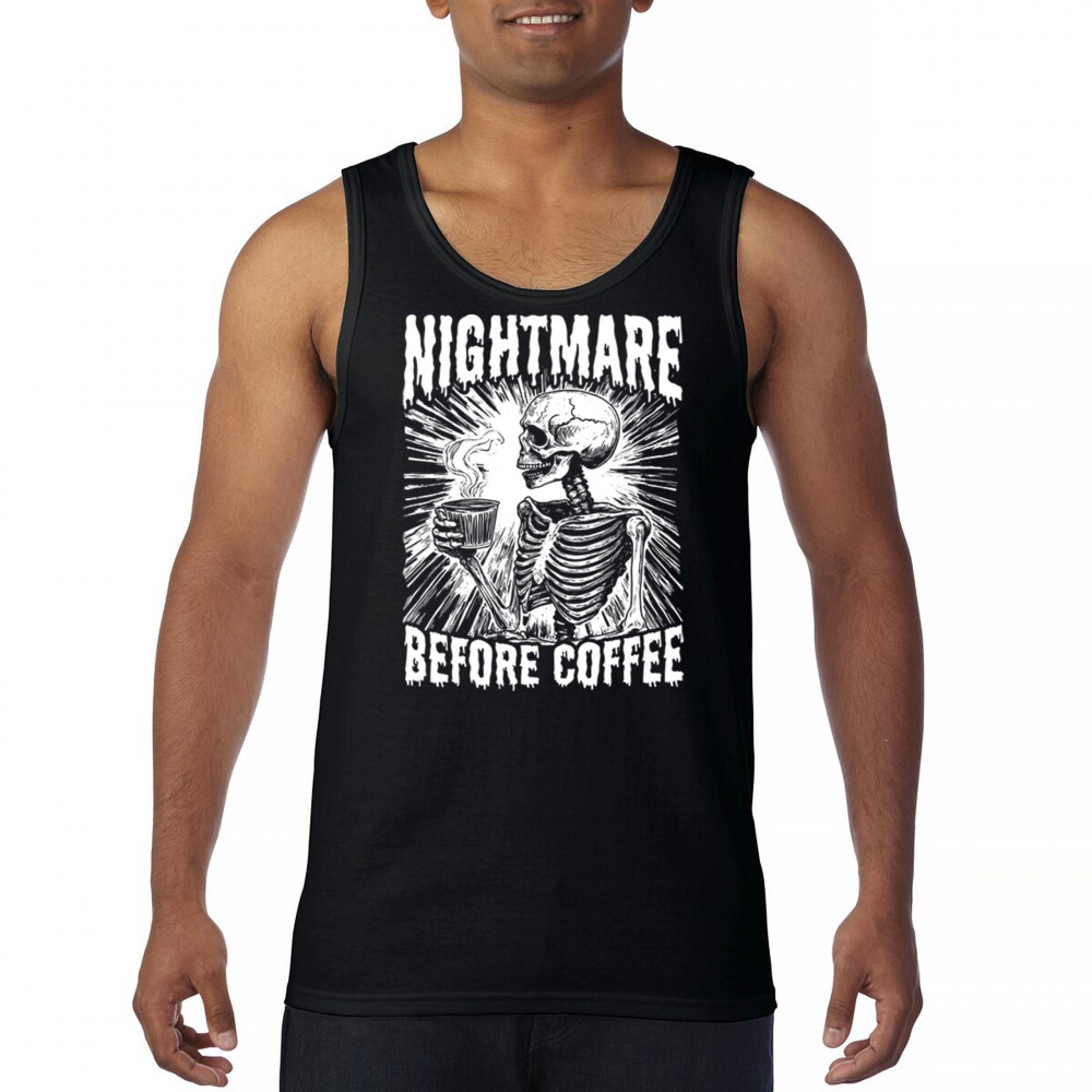NIGHTMARE BEFORE COFFEE tank top funny halloween skeleton skull fall men's top black