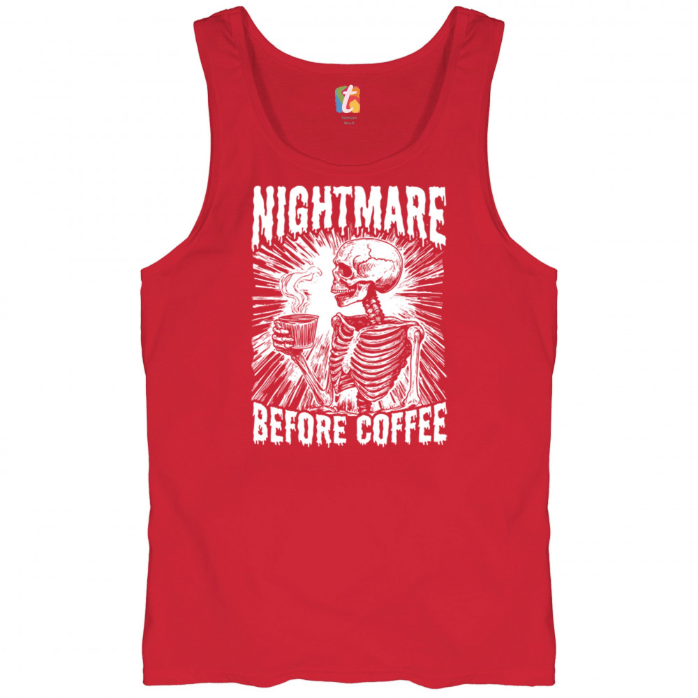 Show off your love for coffee with this quirky "Nightmare Before Coffee" skeleton design, blending humor and gothic style for caffeine lovers.