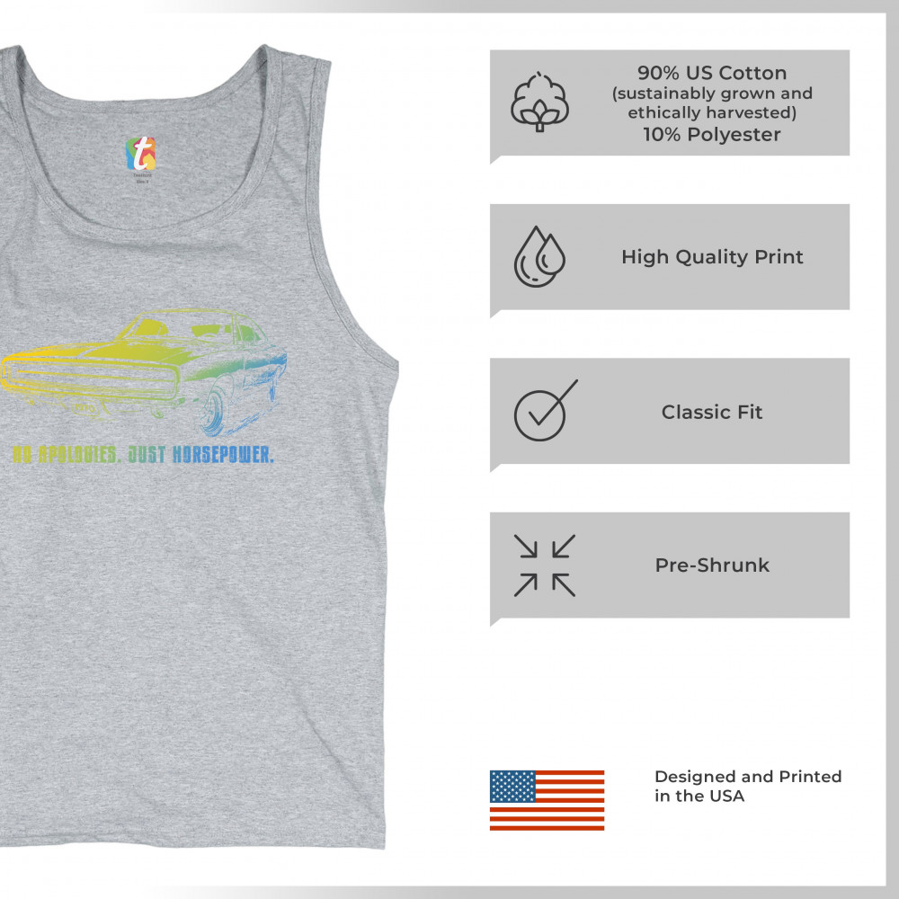 Bold 1970 muscle car design with gradient pop. No apologies, just horsepower—perfect for car shows, gearheads, and performance lovers.