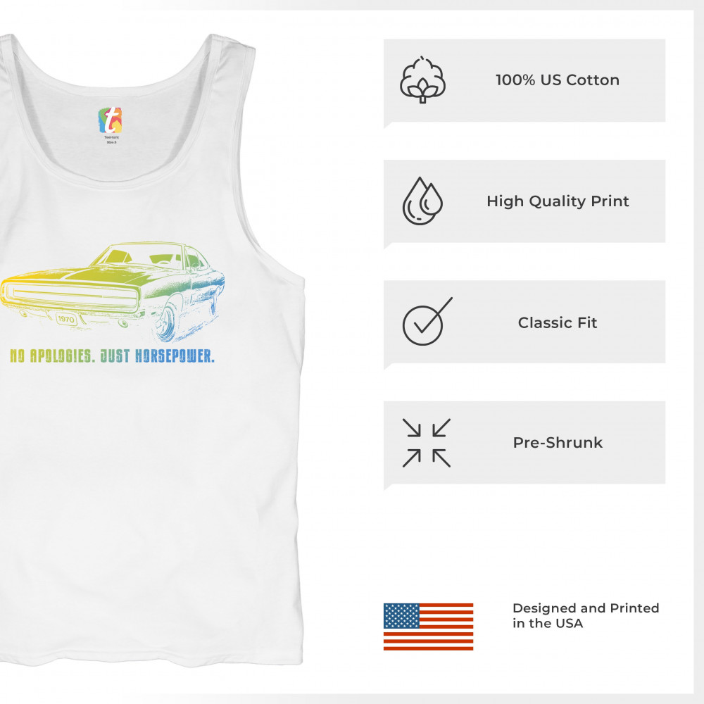 Bold 1970 muscle car design with gradient pop. No apologies, just horsepower—perfect for car shows, gearheads, and performance lovers.