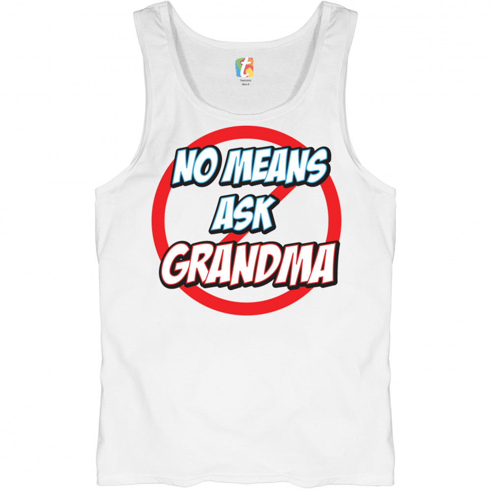 NO MEANS ASK GRANDMA tank top granny mother's day funny mimi nana men's top white