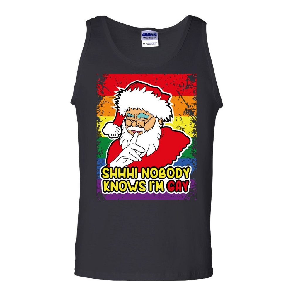 NOBODY KNOWS I'M GAY tank top christmas santa lgbt xmas ho ho ho sleeveless black