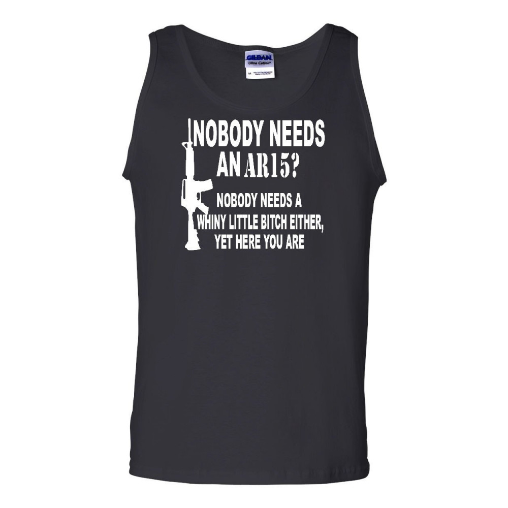 NOBODY NEEDS AN AR15? tank top funny offensive humor political firearms gun rights muscle shirt black