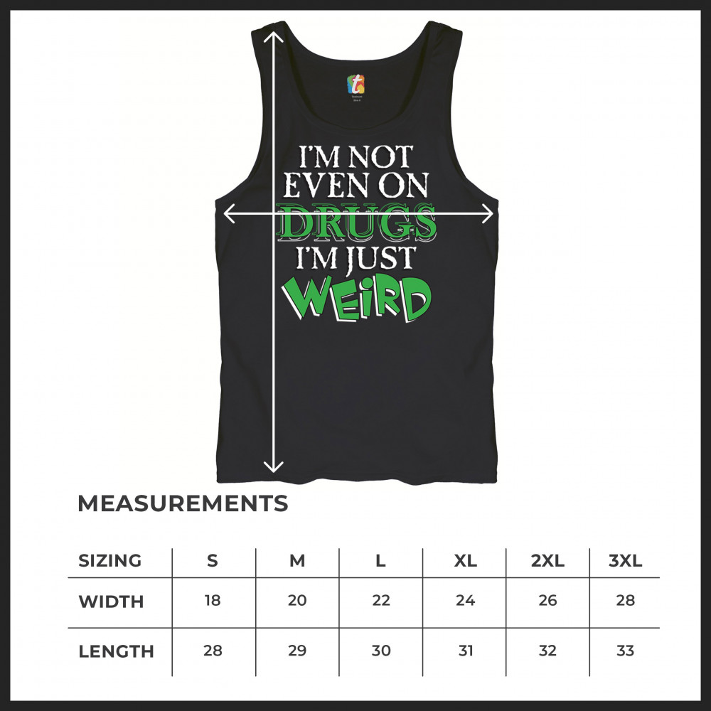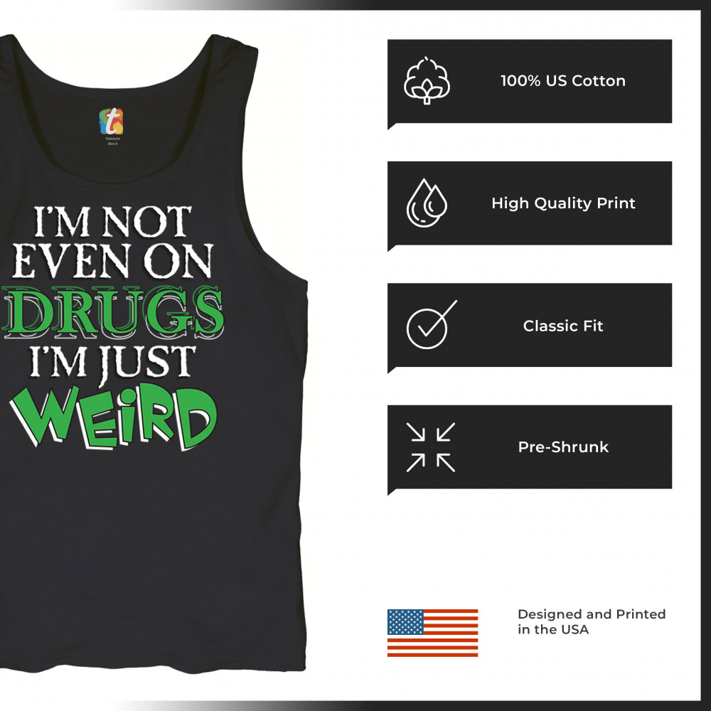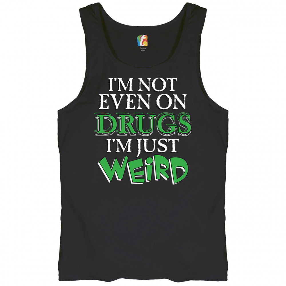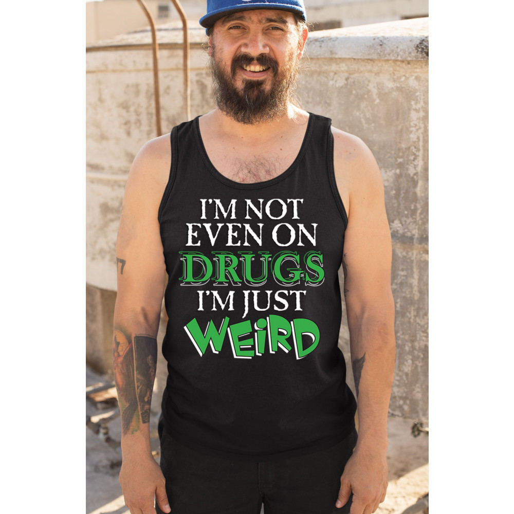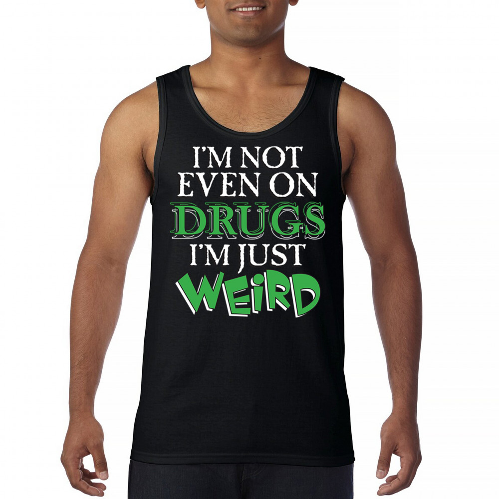 NOT EVEN ON DRUGS WEIRD tank top funny antidrug humor sarcastic weed men's top black