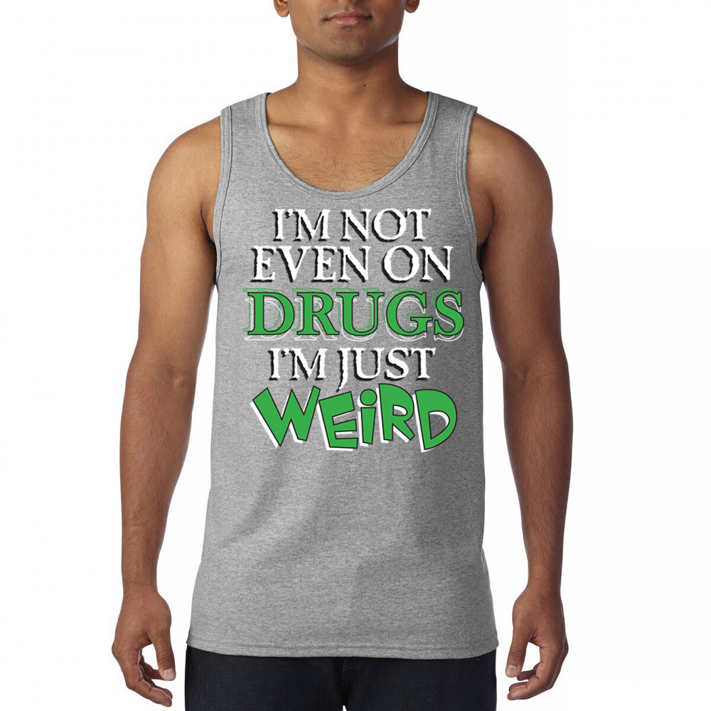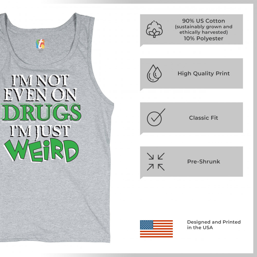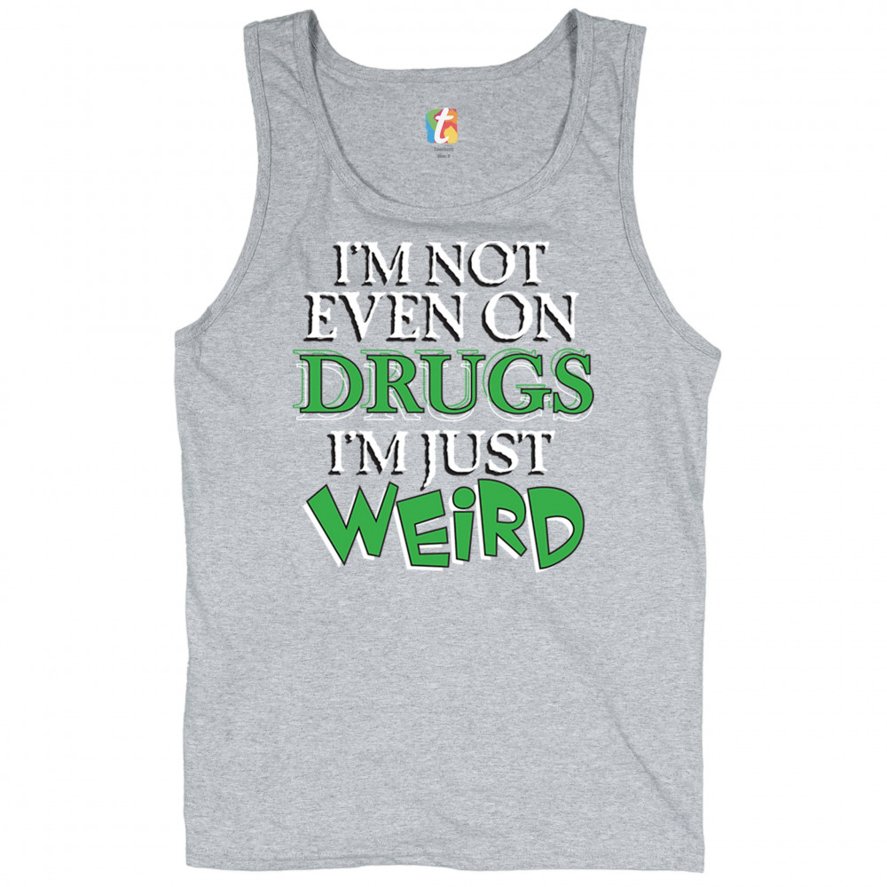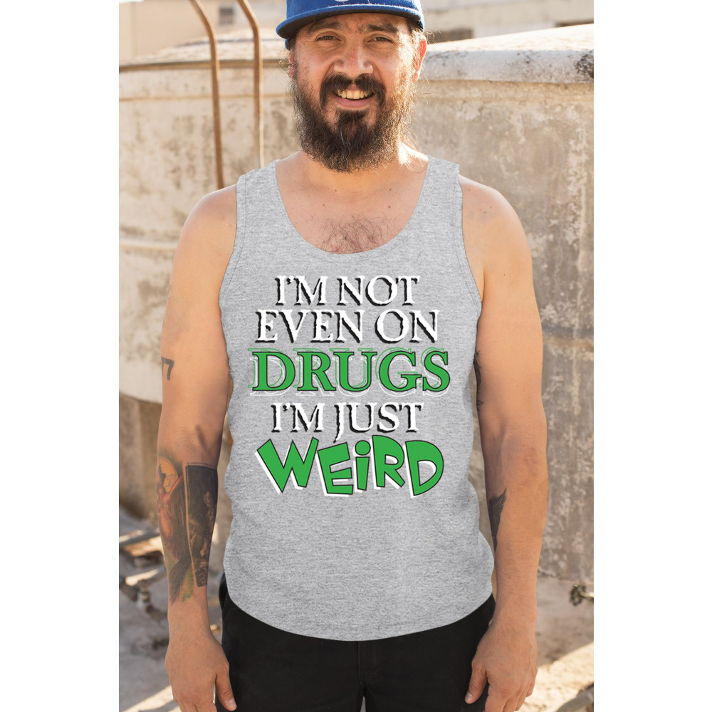 Bold weird design for introverts and quirky minds. Says “I'm not even on drugs I'm just weirdâ€â€”perfect for awkward humor and loud energy.