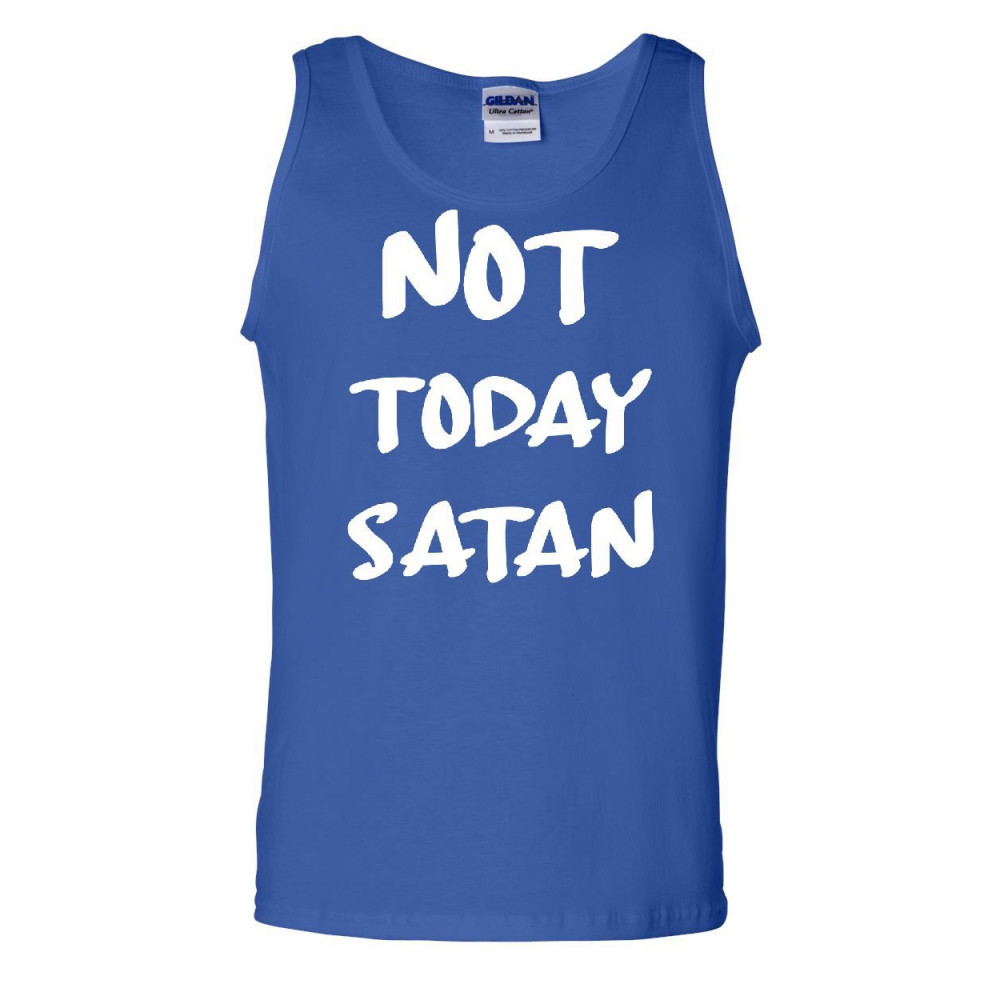 NOT TODAY SATAN tank top religious funny jesus religion faith blue