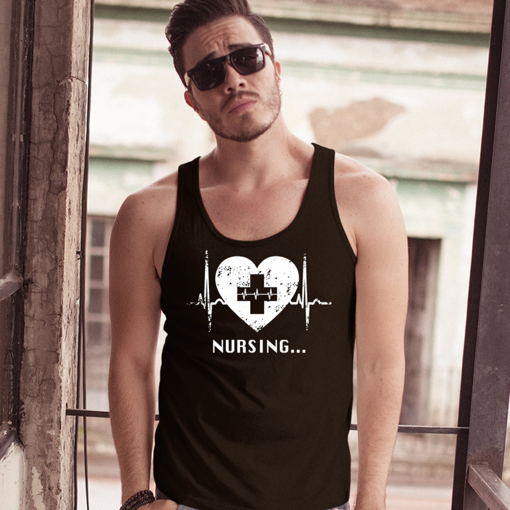 NURSING HEARTBEAT tank top cpr first aid medical assistant emt ems men's top black