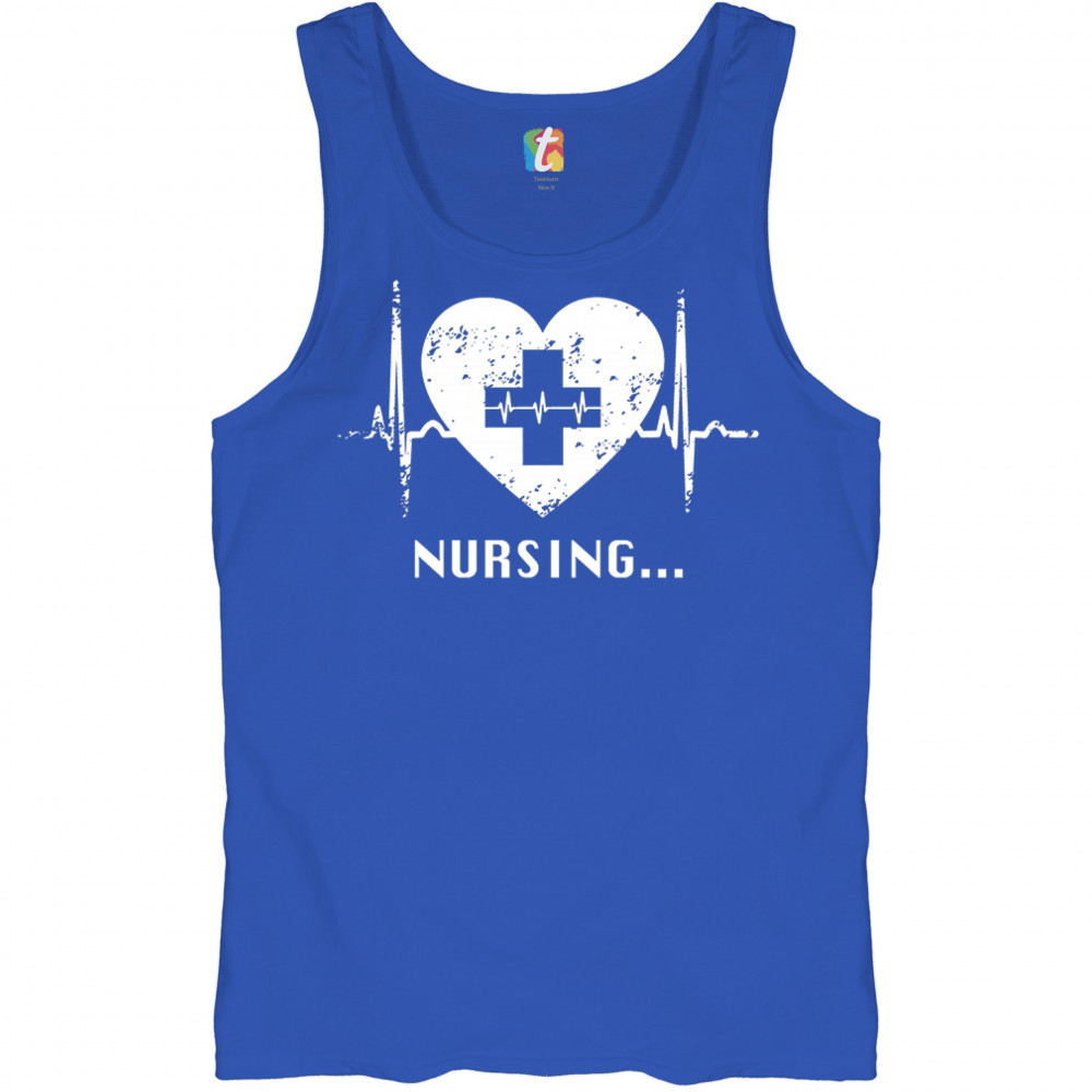 NURSING HEARTBEAT tank top cpr first aid medical assistant emt ems men's top royal blue