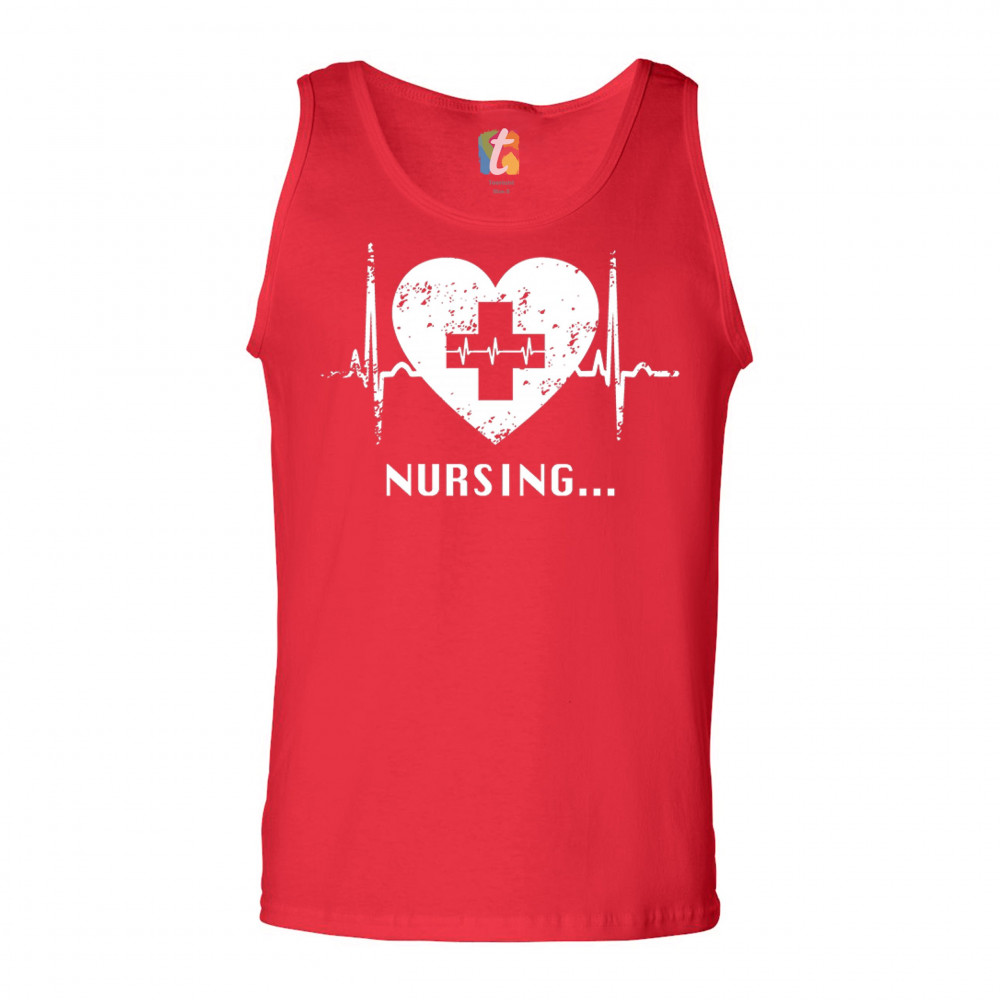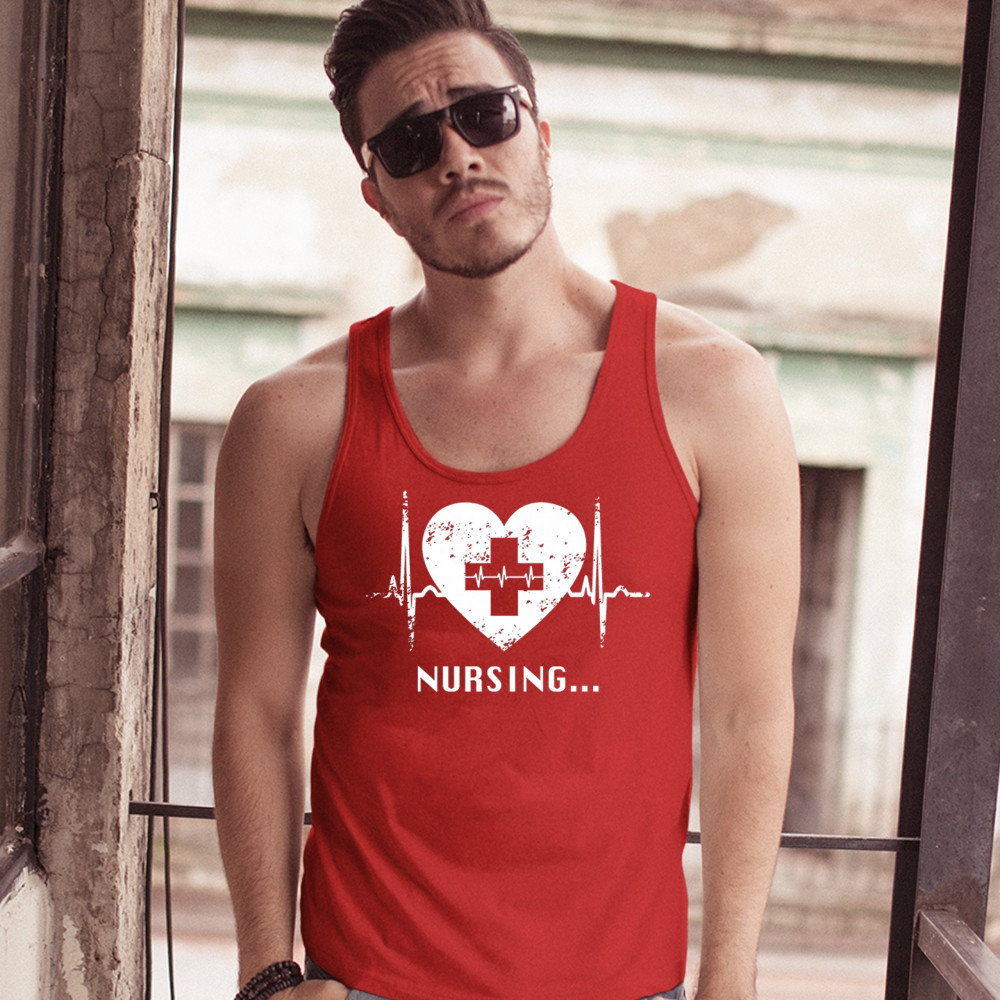 A print featuring a heart with a cross in it's center and saying "Nursing...". Inside of the cross and to the sides of the heart there is a heartbeat graph. A great choice as a gift for a registered nurse, who is busy everyday saving people's lives.