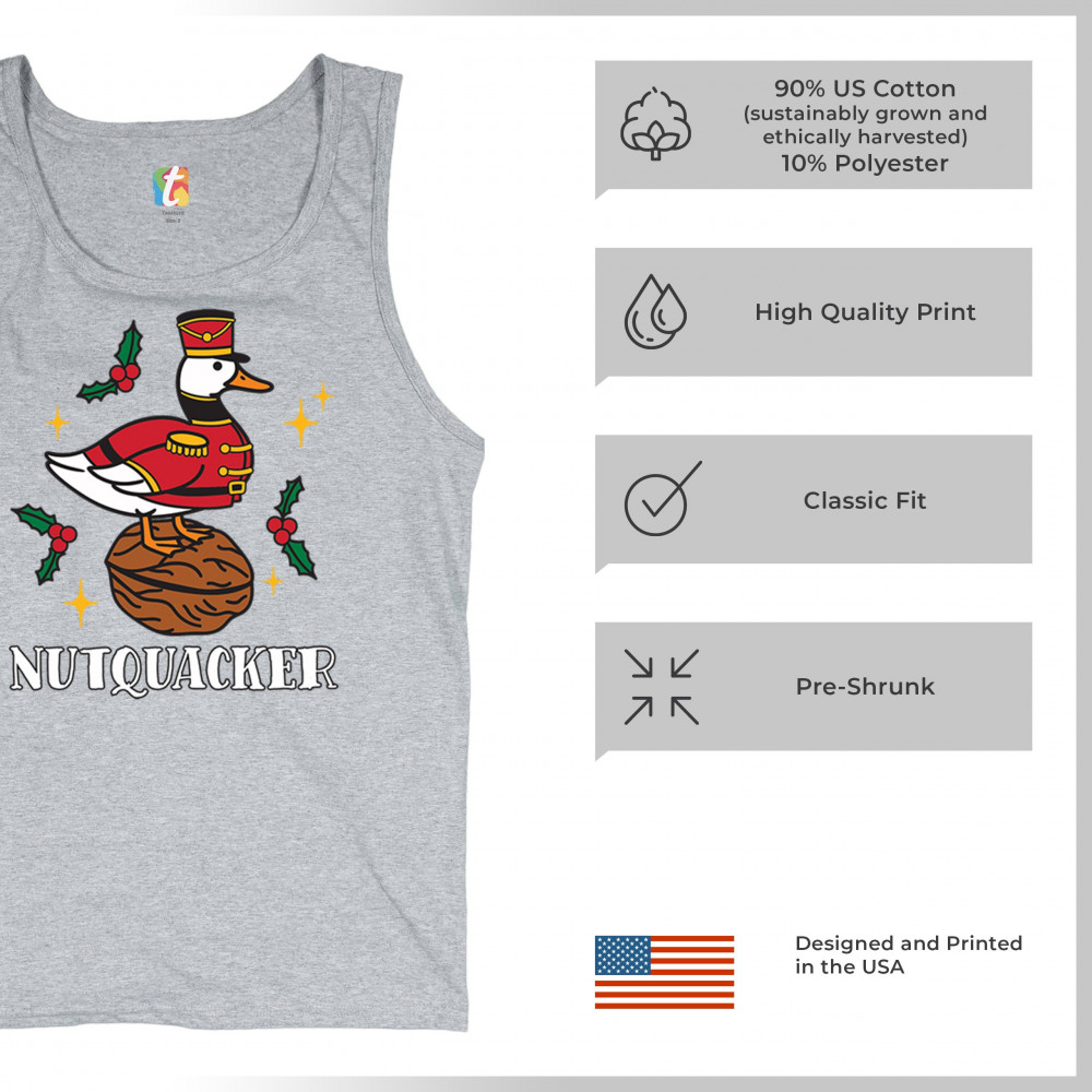 Funny Nutquacker Christmas design featuring a festive duck, holiday humor, and seasonal charm. Great for parties, gifts, and cheerful holiday style.
