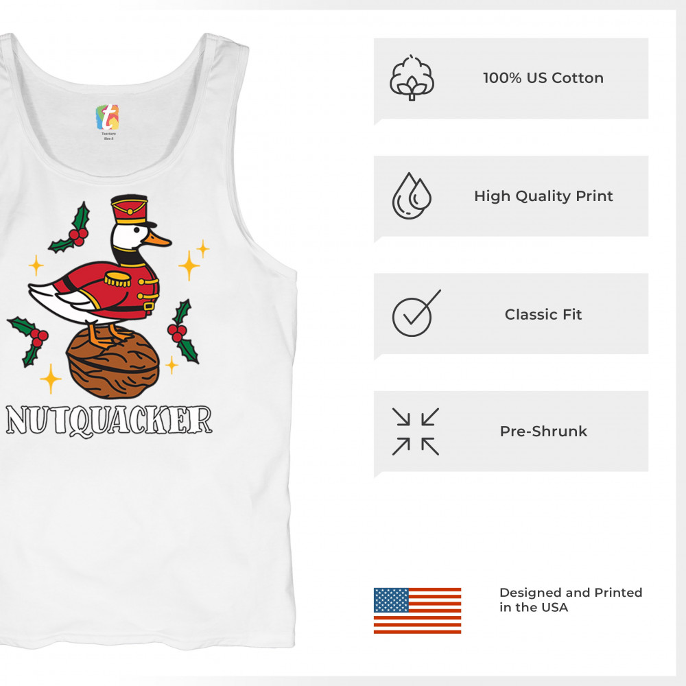 Funny Nutquacker Christmas design featuring a festive duck, holiday humor, and seasonal charm. Great for parties, gifts, and cheerful holiday style.
