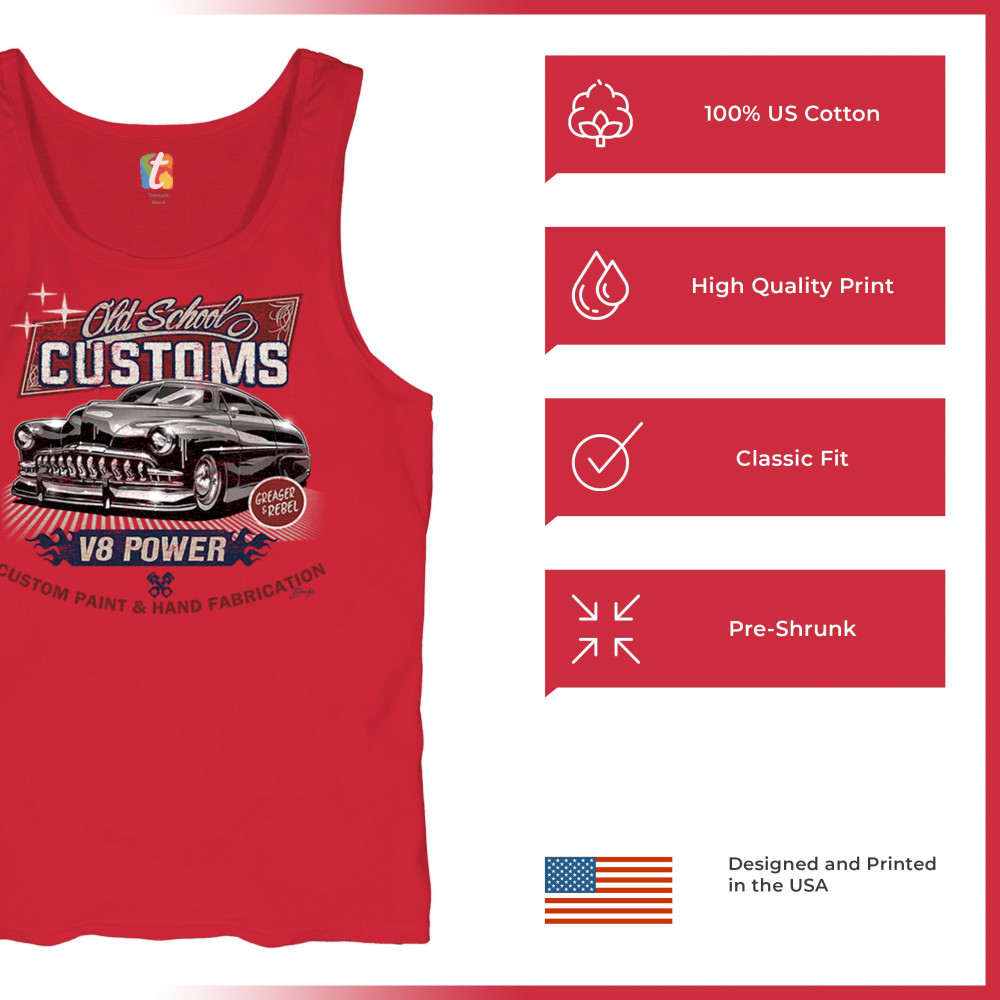 Step into the world of classic automotive culture with our "Old School Customs" t-shirt. Featuring a bold V8 power design, this shirt highlights the art of custom paint and hand fabrication. It's perfect for car enthusiasts, greasers, and rebels who appreciate the unique style of vintage rides. Made from high-quality materials, this tee offers comfort and durability, making it a great choice for car shows or casual outings. Show your love for old-school cars and stand out with this stylish and nostalgic piece. Add a touch of vintage charm to your wardrobe today.