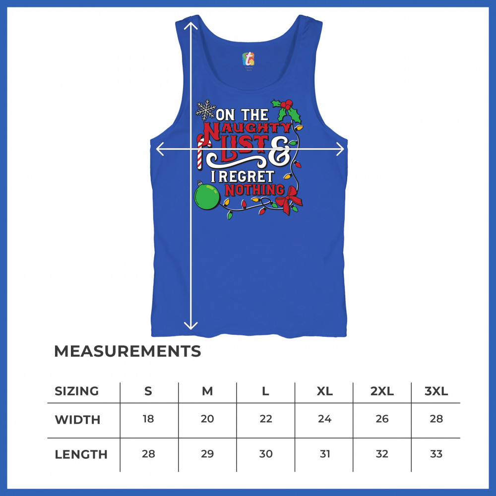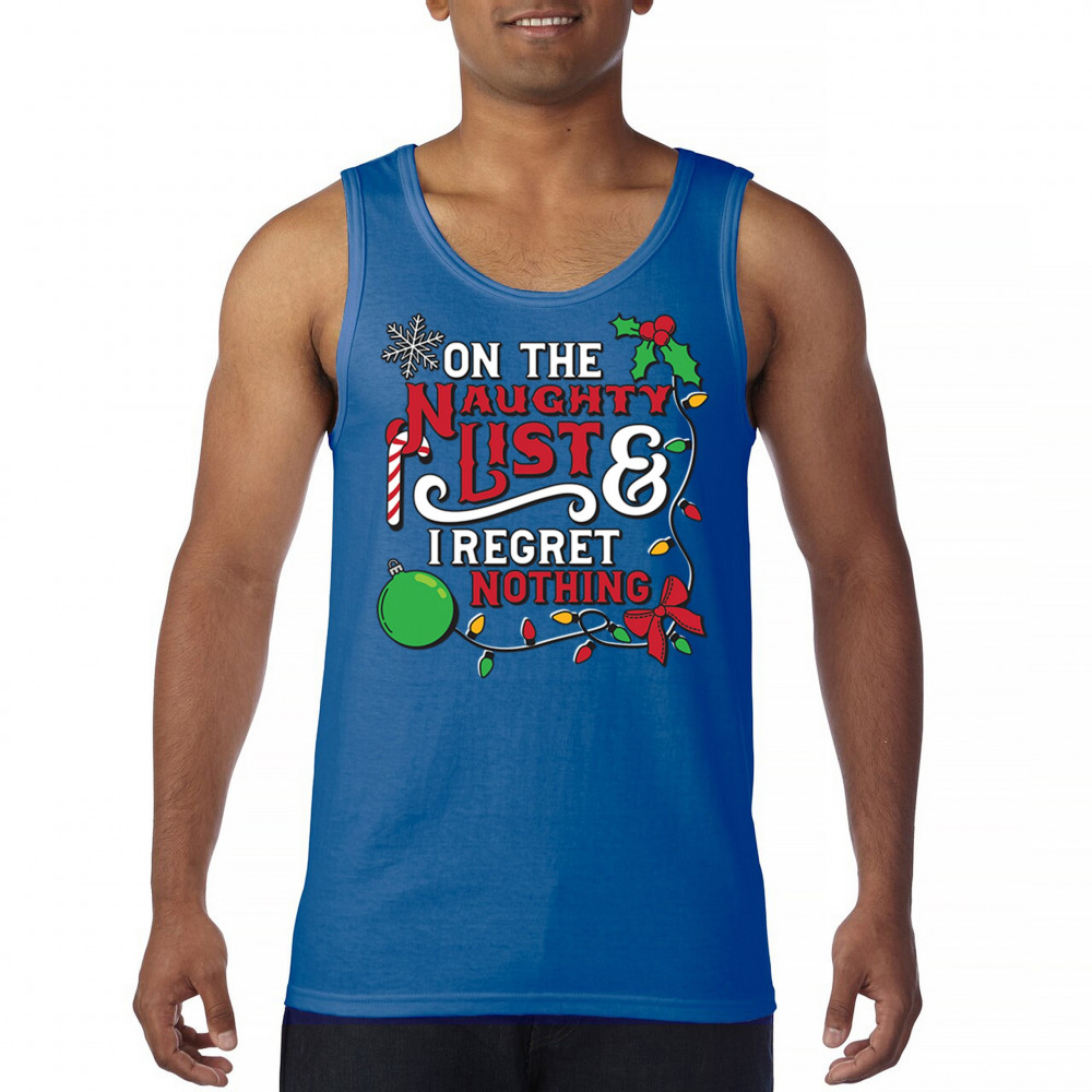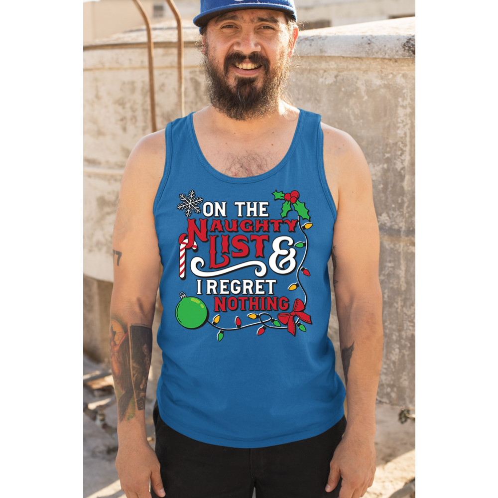 Celebrate the holidays with the playful “Naughty List & I Regret Nothing†design. Perfect for festive gatherings, ugly sweater parties, and holiday fun!