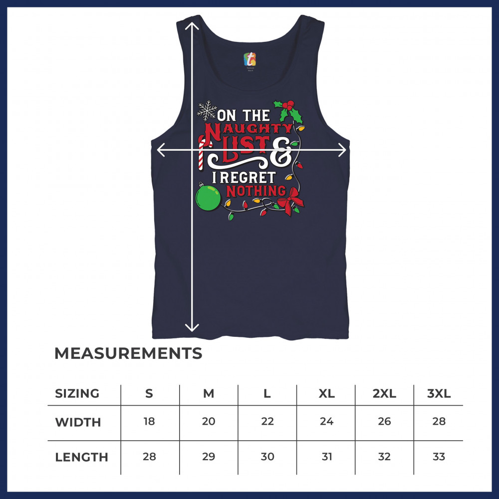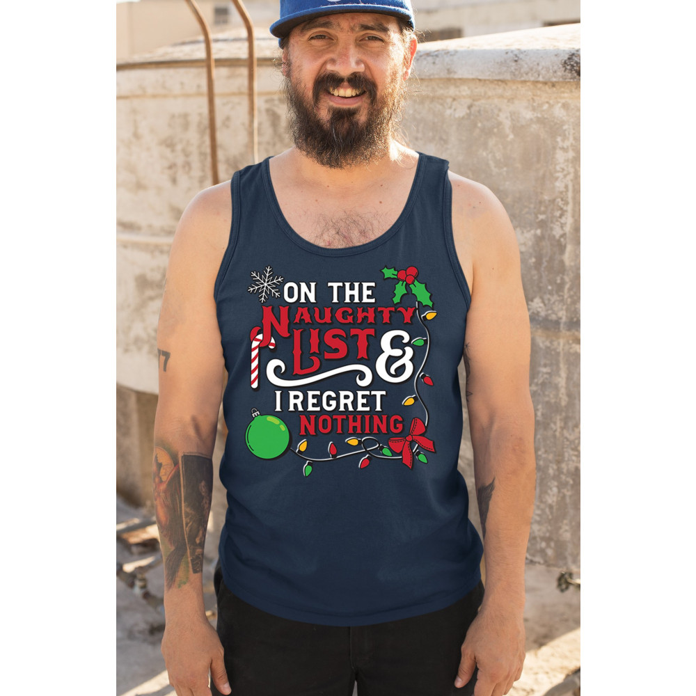 Celebrate the holidays with the playful “Naughty List & I Regret Nothing†design. Perfect for festive gatherings, ugly sweater parties, and holiday fun!