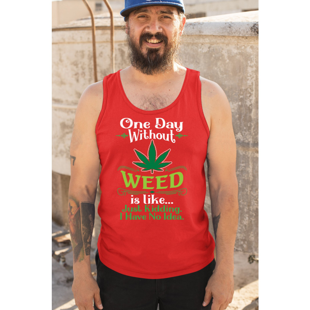 Humorous "One Day Without Weed" design with a bold cannabis leaf. Perfect for fans of Mary Jane, stoned humor, and relaxed, trippy style. Ideal for chill vibes.