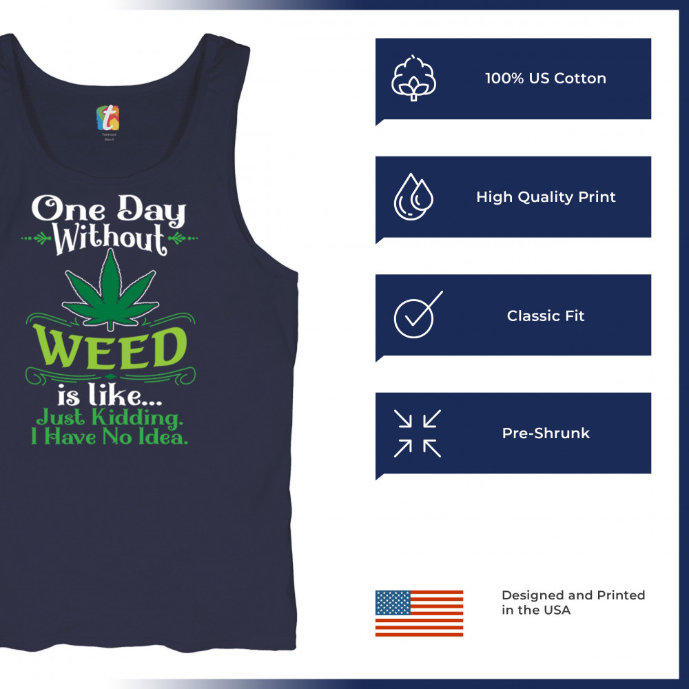 Humorous "One Day Without Weed" design with a bold cannabis leaf. Perfect for fans of Mary Jane, stoned humor, and relaxed, trippy style. Ideal for chill vibes.