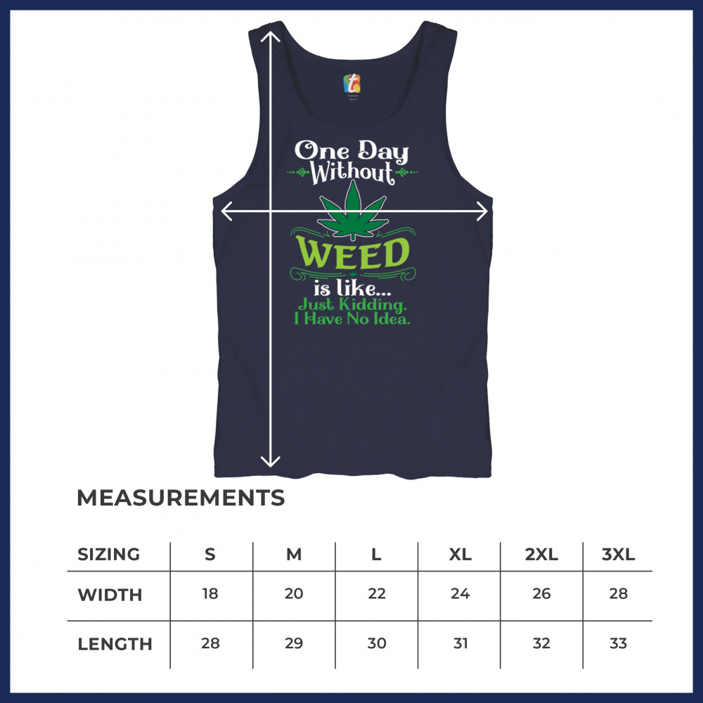 Express your love for Mary Jane and your sense of humor with our "One Day Without Weed" design. Featuring a bold cannabis leaf and a playful, witty message, this design is perfect for those who enjoy the chill vibes of cannabis culture. Ideal for relaxing with your best buds, making a statement about legalization, or simply adding some fun to your wardrobe. Embrace the stoned humor and show off your relaxed, trippy style with this unique design.