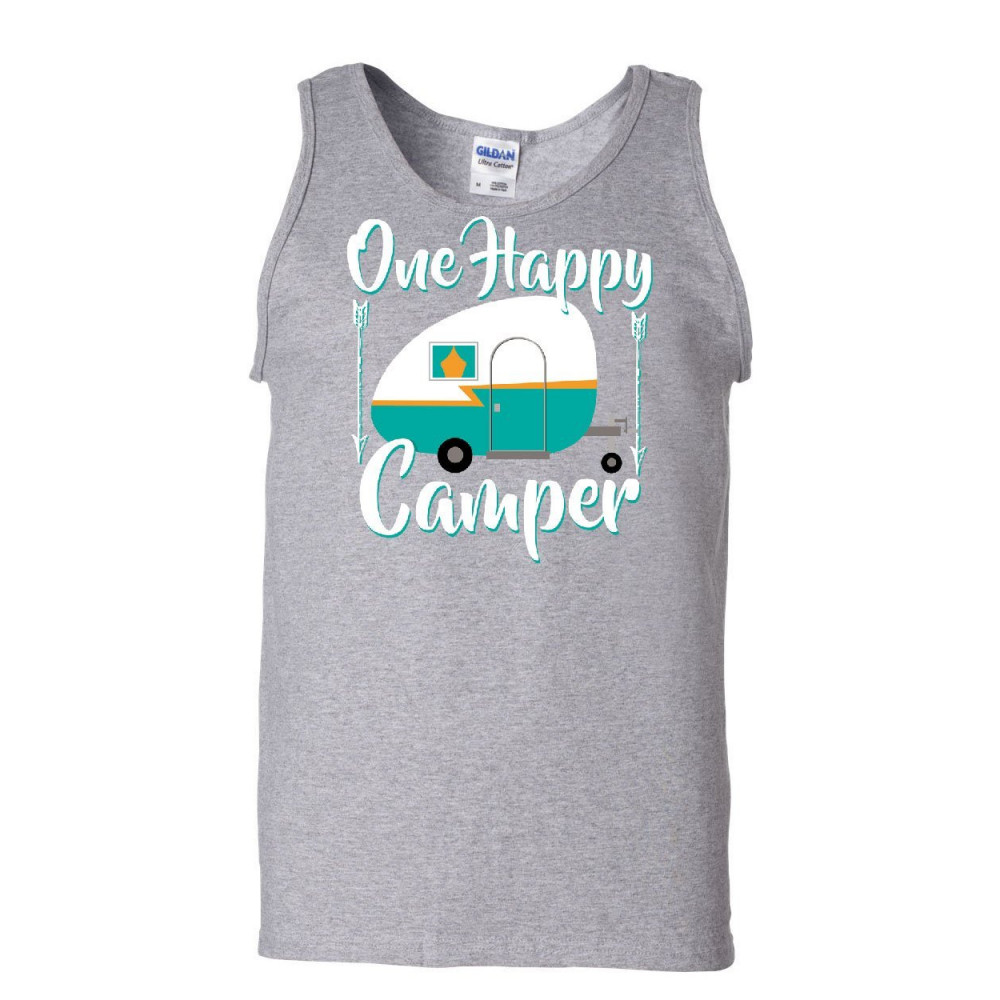 ONE HAPPY CAMPER tank top camping roadtrip rv trailer sleeveless gray