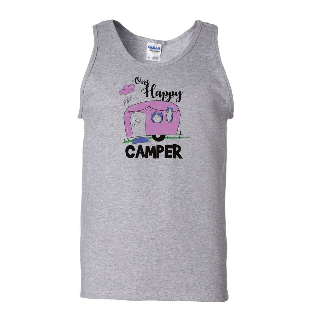 ONE HAPPY CAMPER RV one happy camper tank top rv trailer camping nature wilderness sleeveless gray