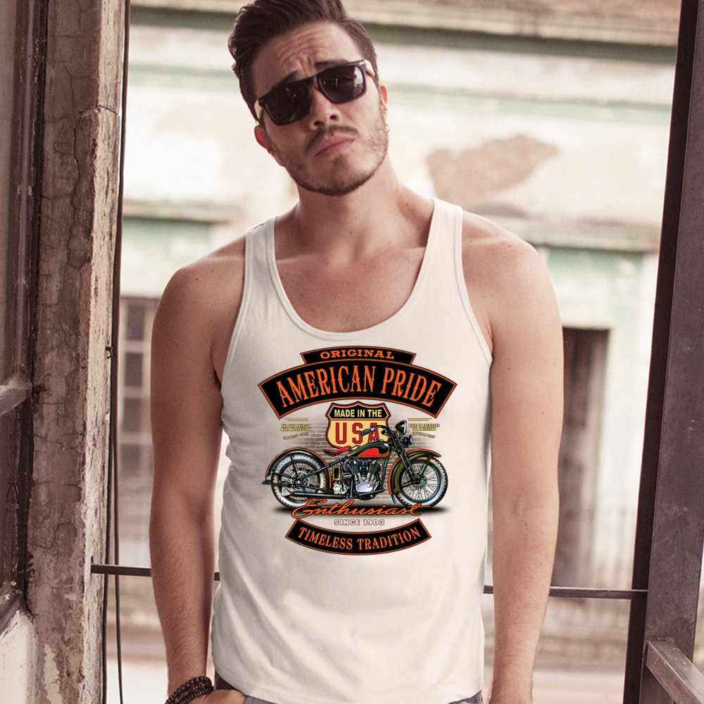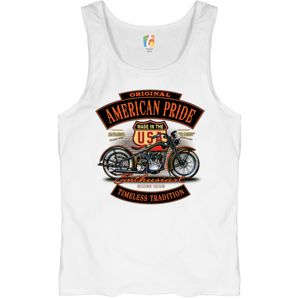 ORIGINAL AMERICAN PRIDE tank top biker chopper motorcycle enthusiast men's top white