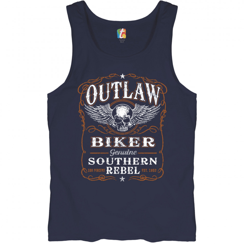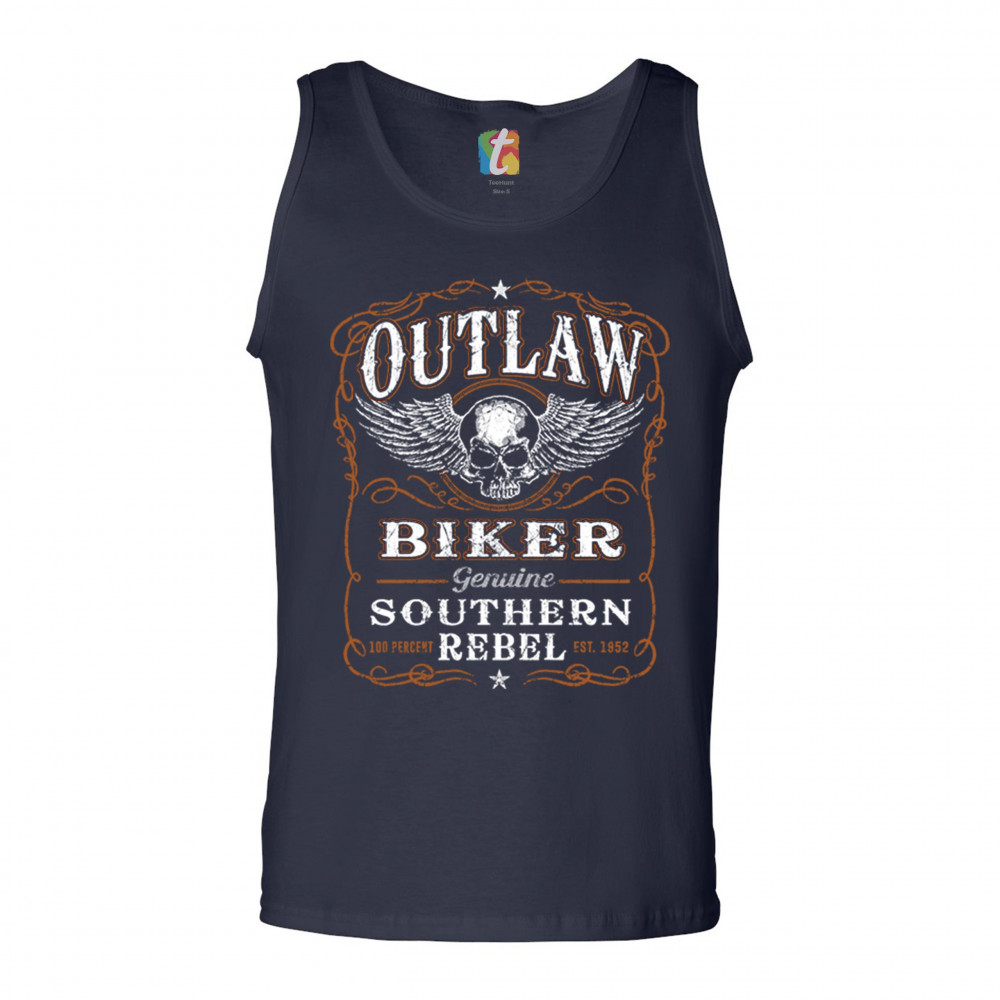 OUTLAW BIKER tank top genuine southern rebel winged skull face men's top navy blue