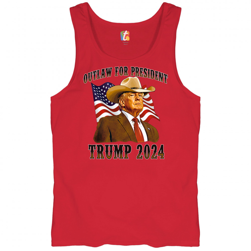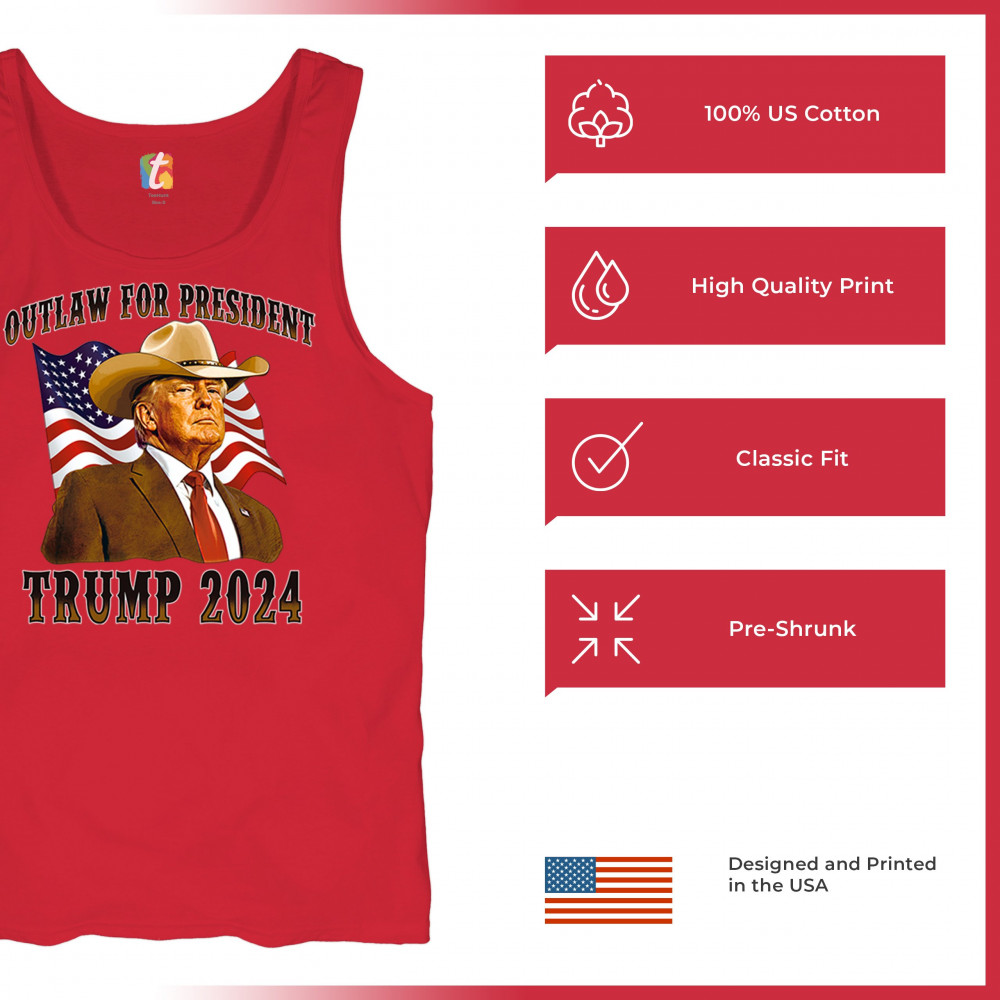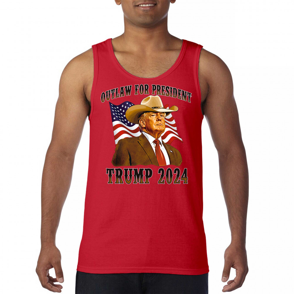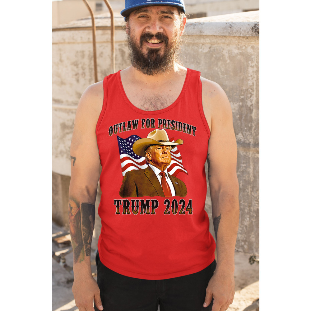 Bold "Outlaw for President" Trump 2024 design for conservative supporters, featuring Donald J. Trump and the American flag. Show your patriotism.
