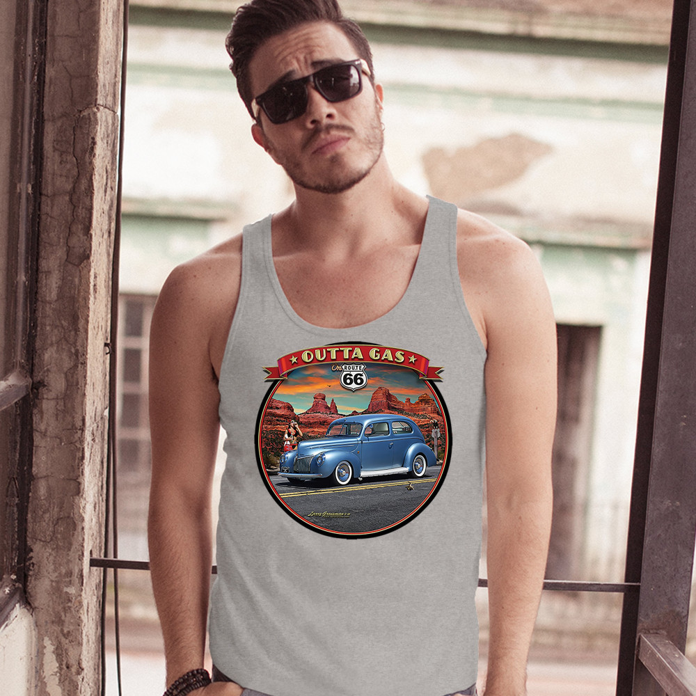OUTTA GAS ON ROUTE 66 tank top the mother road retro vintage men's top gray