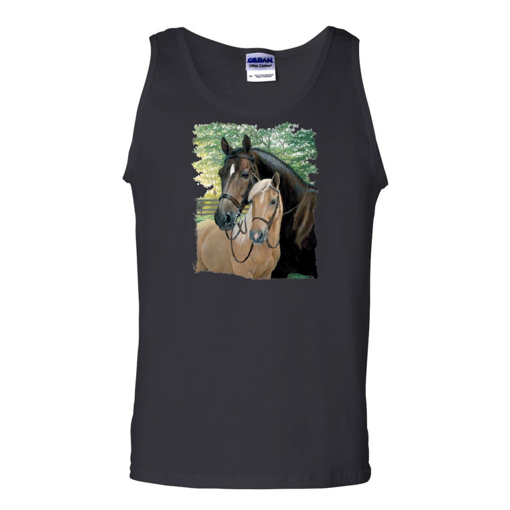 PAIR OF HORSES tank top mustangs horseback riding pony stallion sleeveless black