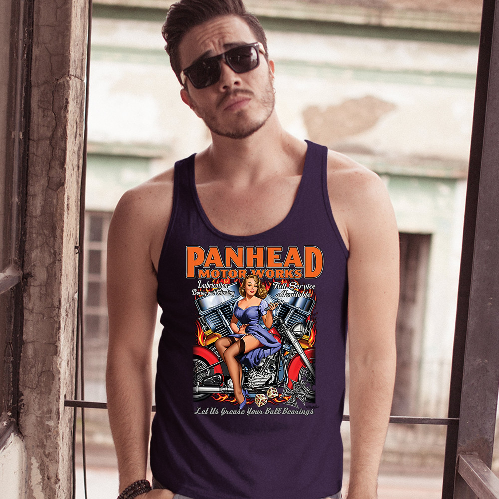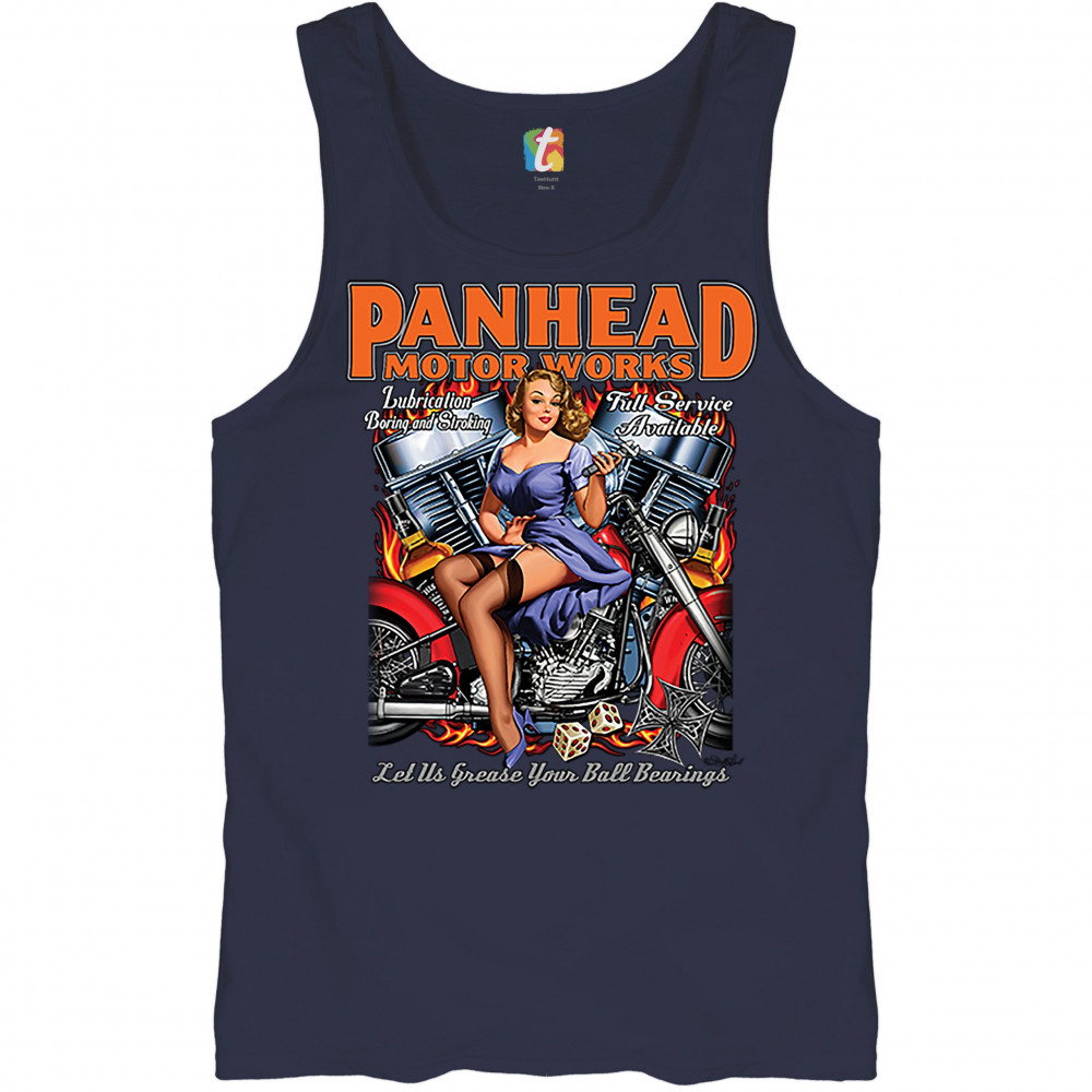 PANHEAD MOTOR WORKS tank top pin-up girl biker babe rider chopper men's top navy blue