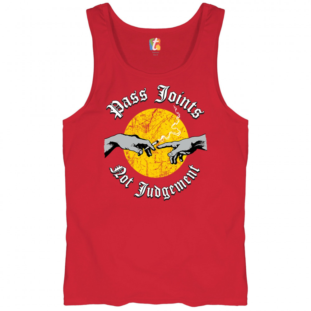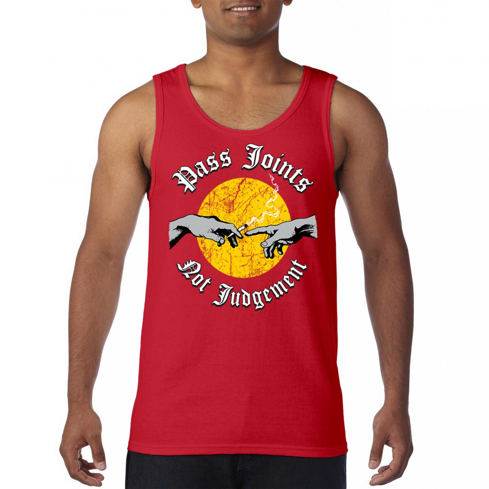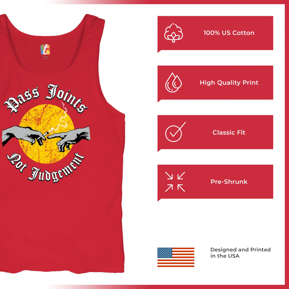 Cannabis culture twist on classic art. Hands passing a joint with “Pass Joints Not Judgement†message. Chill, bold, and unapologetically stoner.