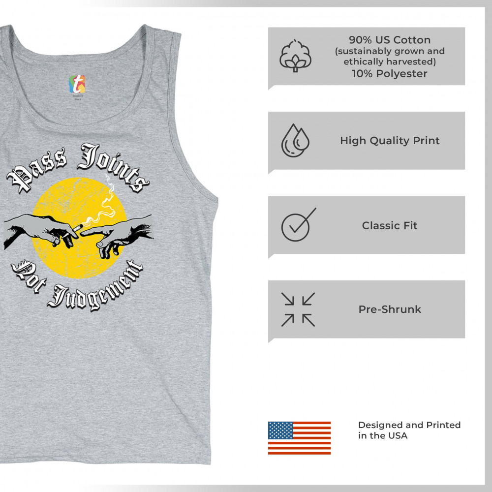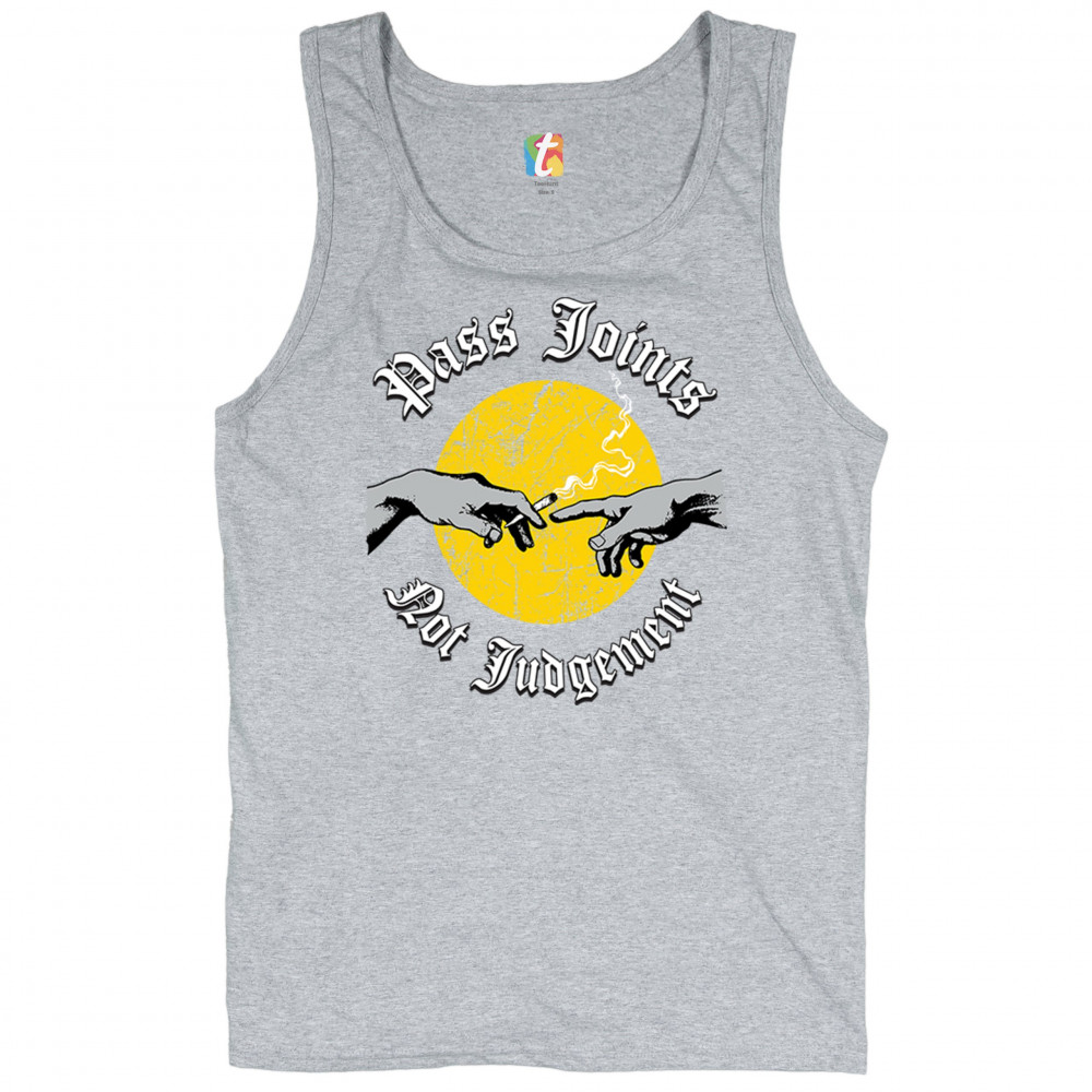 Cannabis culture twist on classic art. Hands passing a joint with “Pass Joints Not Judgement†message. Chill, bold, and unapologetically stoner.
