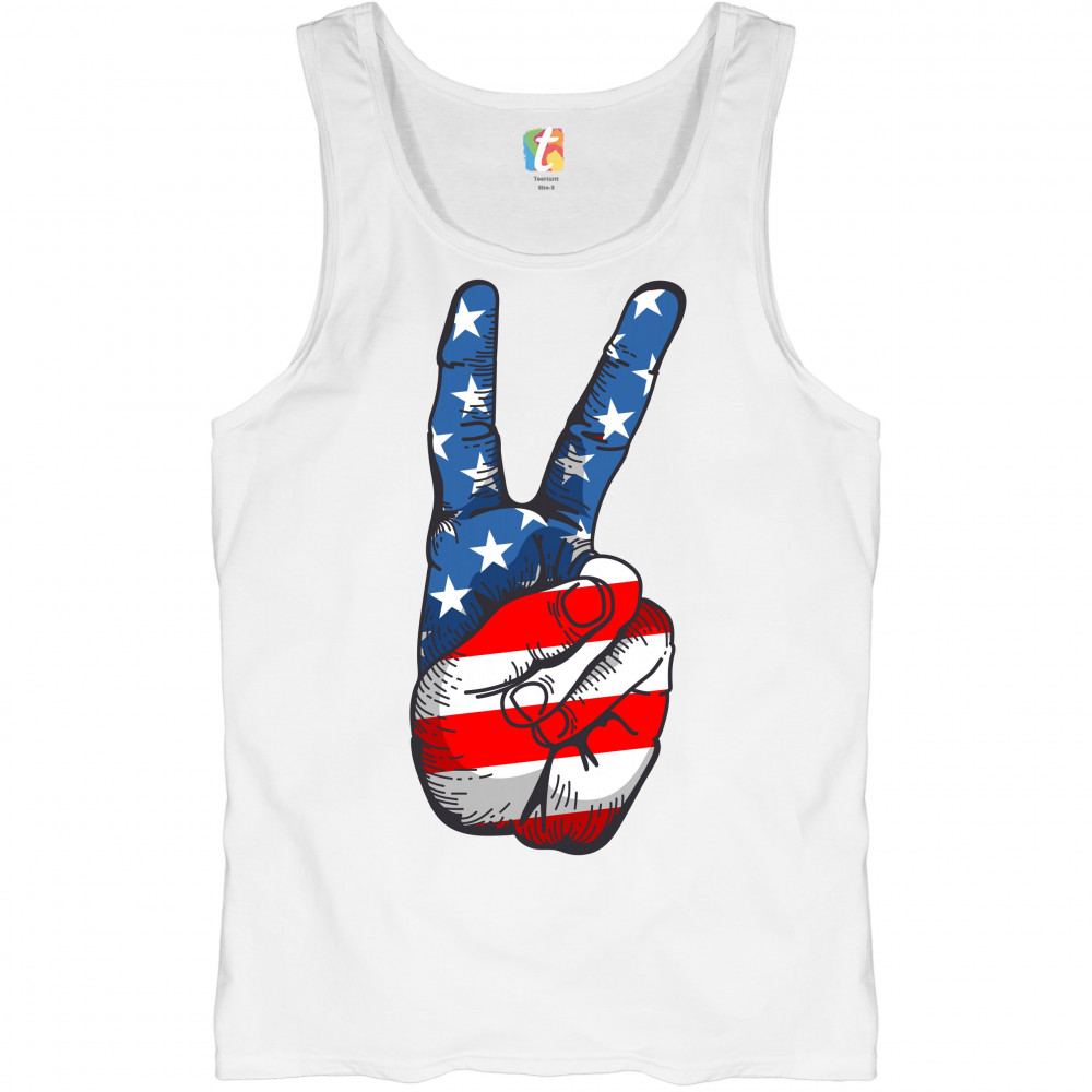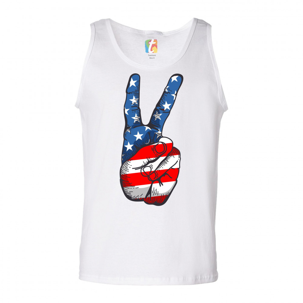 PATRIOTIC VICTORY SIGN tank top american flag usa independence day men's top white