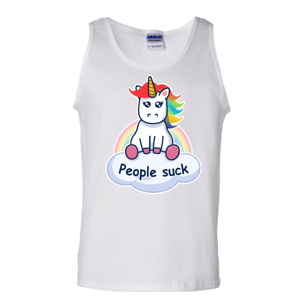 PEOPLE SUCK cute unicorn tank top funny rainbow pony introvert sleeveless white