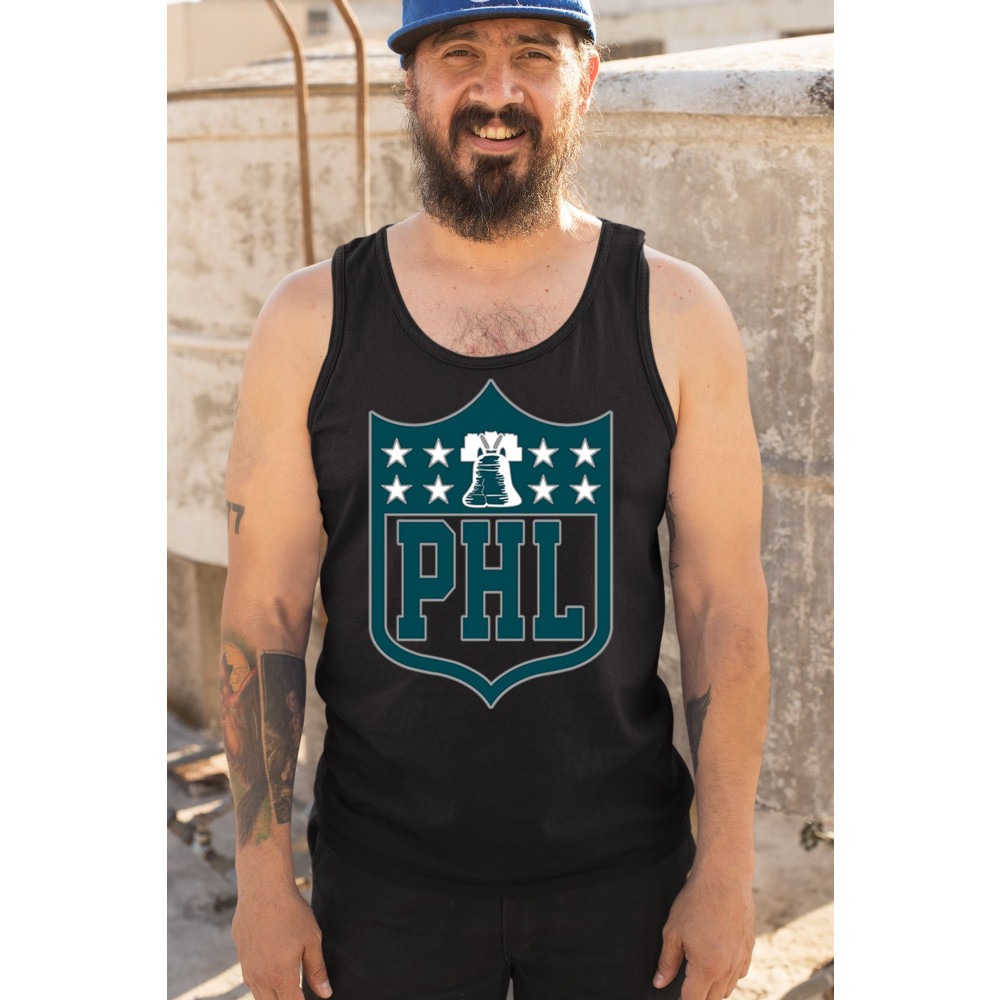 PHILADELPHIA SHIELD men's tank top birds football fan bleed green philly black