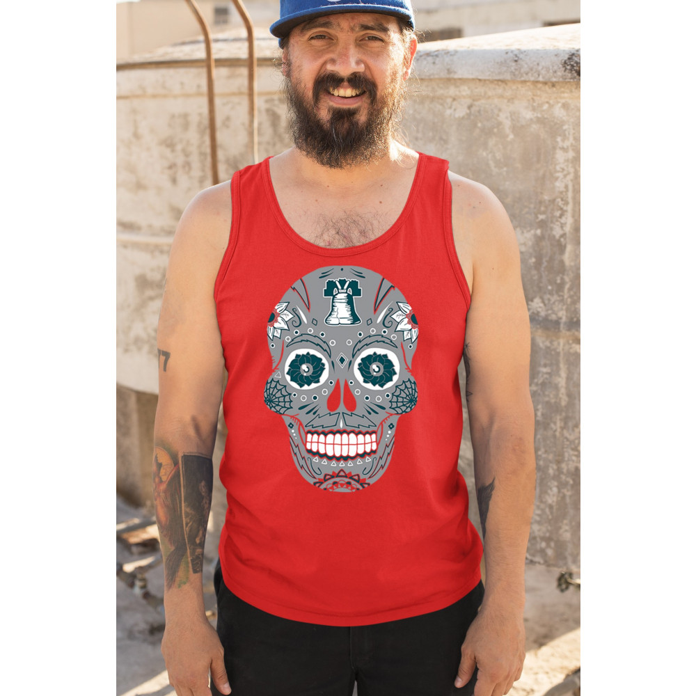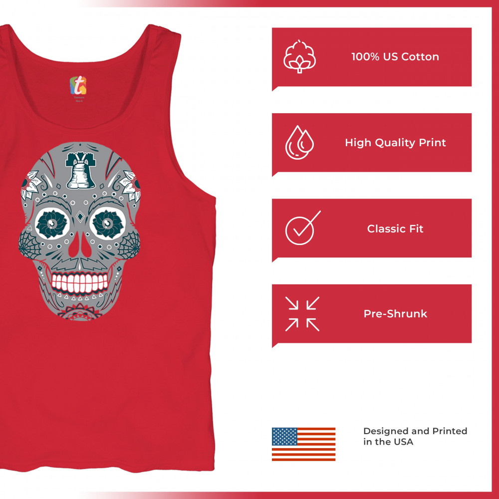Philly meets tradition in this Sugar Skull design, mixing calavera art with the iconic liberty bell and marigold flowers. Perfect for Philly sports culture, fantasy league energy, or game day skull vibes, it captures Philly gothic art and fan zone spirit. A unique way to honor Dia de los Muertos while showing local Philadelphia pride and heritage in bold style.