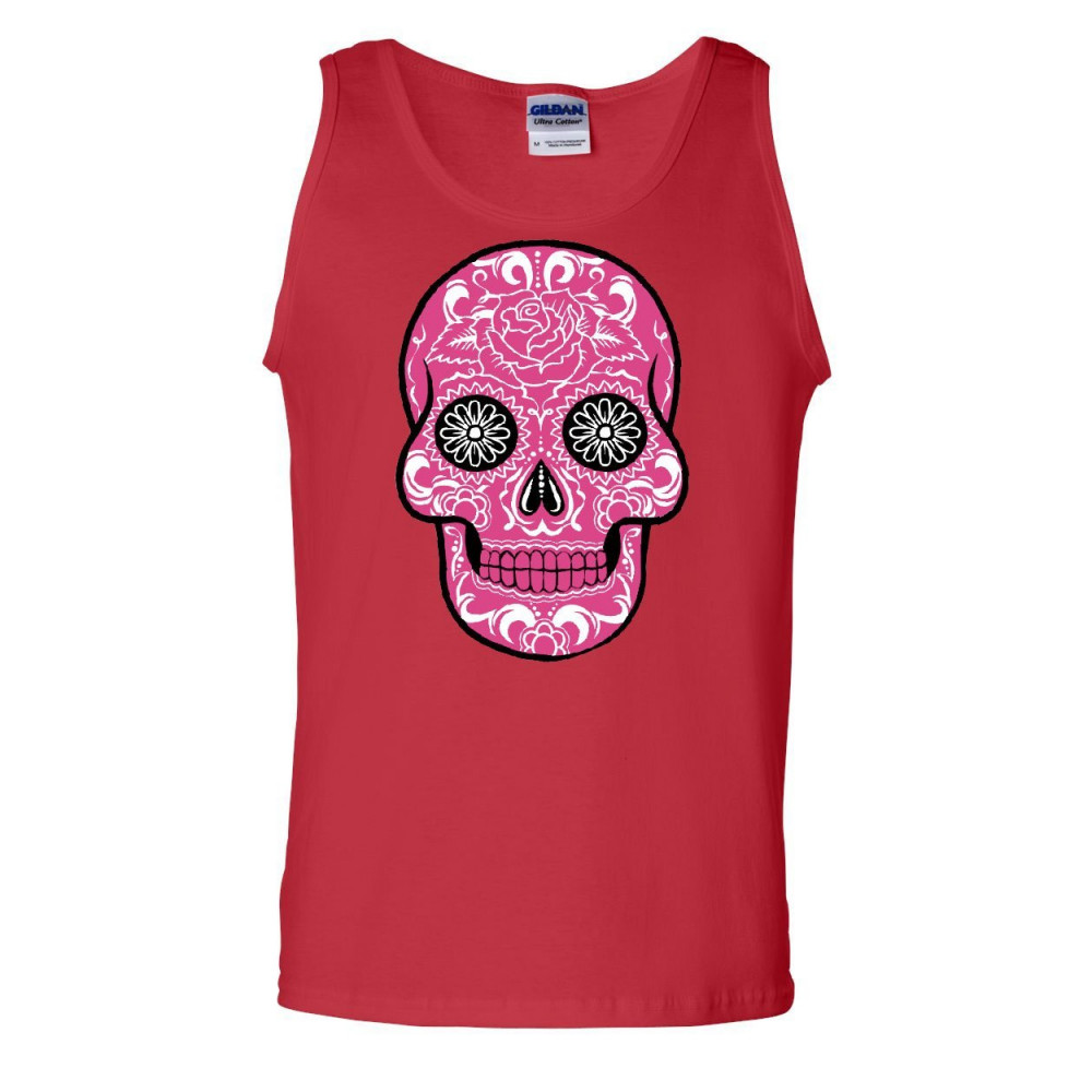 CALAVERA PINK SUGAR SKULL pink sugar skull with roses tank top day of the dead top red