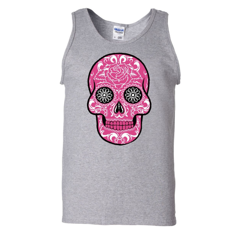 CALAVERA PINK SUGAR SKULL pink sugar skull with roses tank top day of the dead top gray