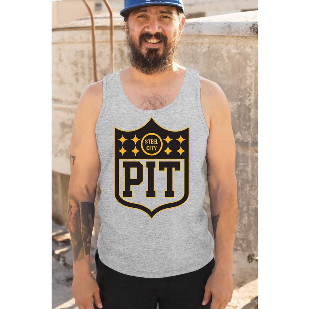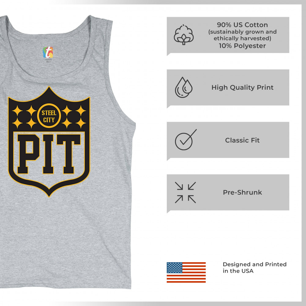 Steel City PIT shield football gear celebrating Pittsburgh football nation, gridiron tradition, playoff vibes, and sports heritage.