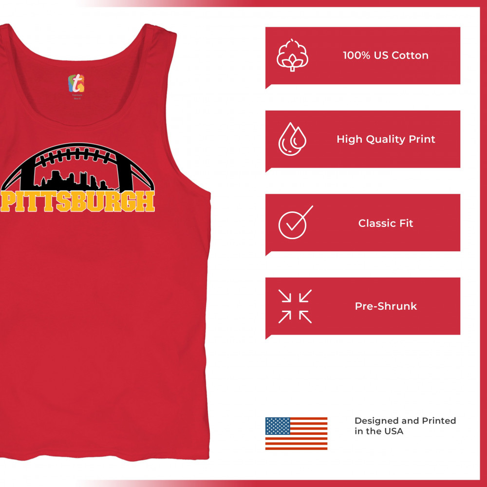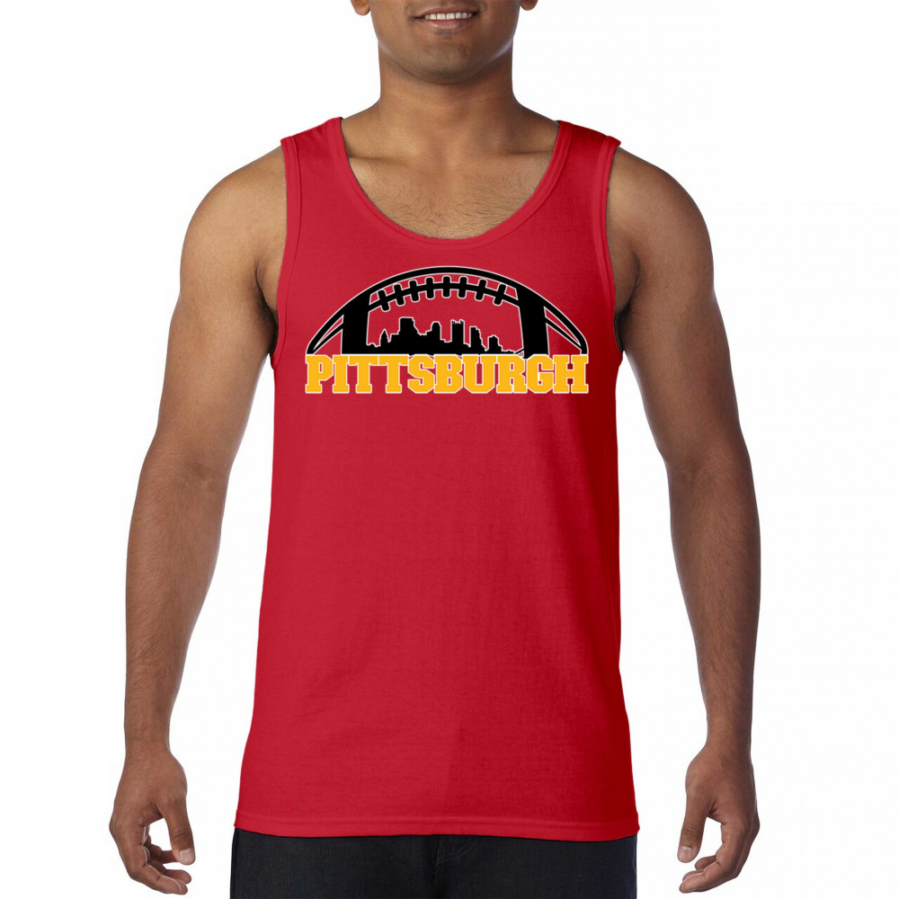 Embrace your Steel City pride with this bold Pittsburgh-themed design, showcasing the city skyline in a unique football graphic. Perfect for game day celebrations, tailgating parties, or everyday wear, this design captures the energy and passion of Pittsburgh's legendary sports culture. Whether you're cheering on your favorite team or representing your city, this design is a must-have for Pittsburgh fans.