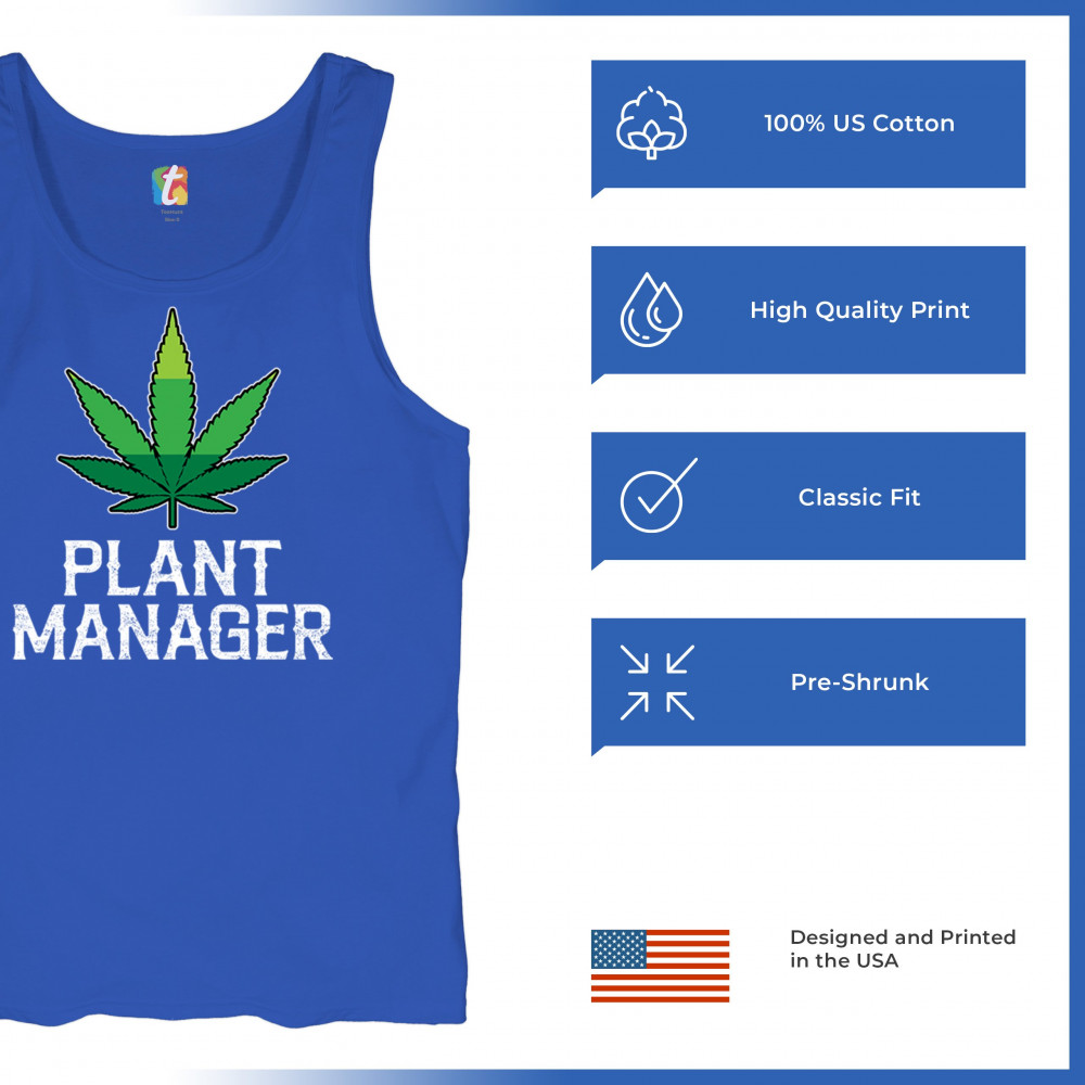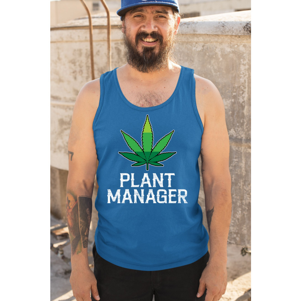 Humorous "Plant Manager" design featuring a bold green cannabis leaf. Perfect for fans of Mary Jane, stoned humor, and relaxed style. Ideal for chill vibes.