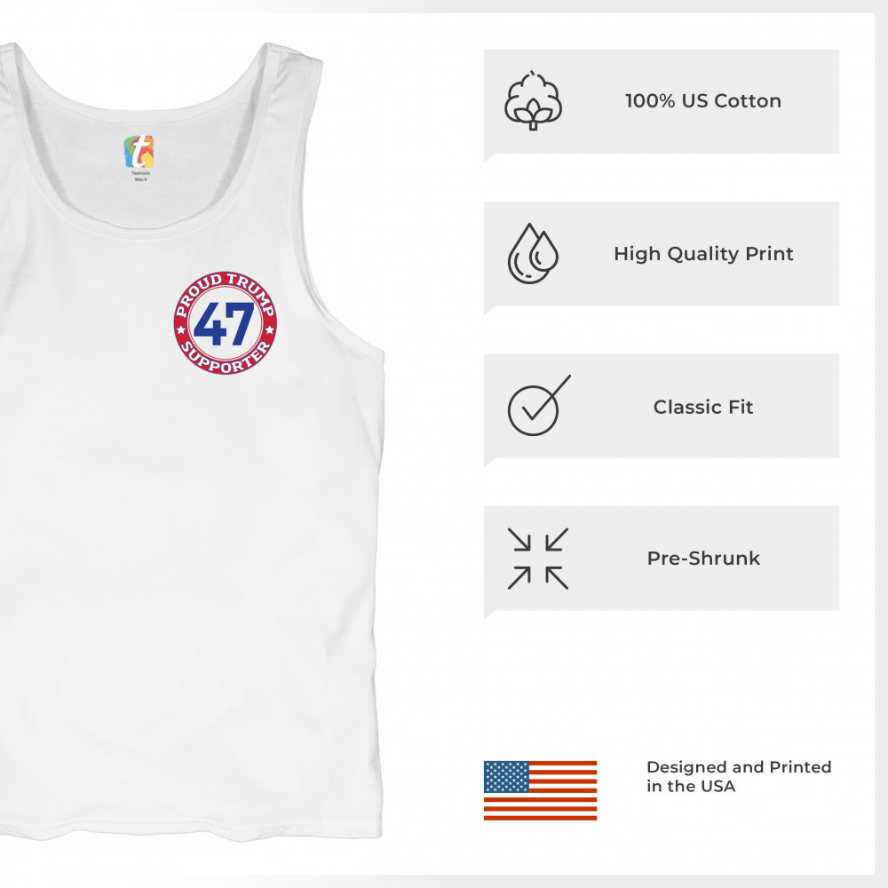Show your steadfast support for President Trump with our "Trump Supporter 47" design. Emblazoned with patriotic symbols like the American flag and iconic imagery, this design embodies the spirit of the America First movement. Join the Trump Train to victo
