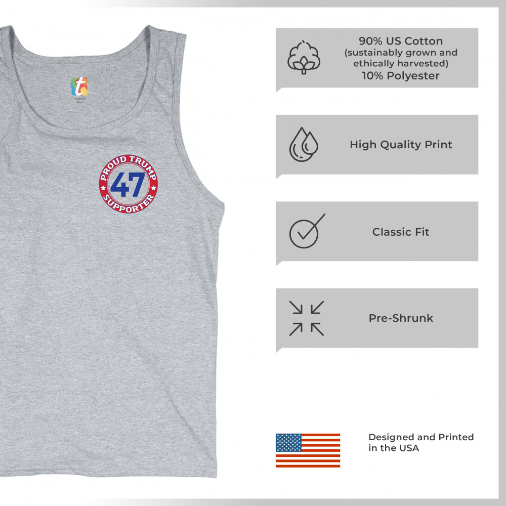 Show your steadfast support for President Trump with our "Trump Supporter 47" design. Emblazoned with patriotic symbols like the American flag and iconic imagery, this design embodies the spirit of the America First movement. Join the Trump Train to victo