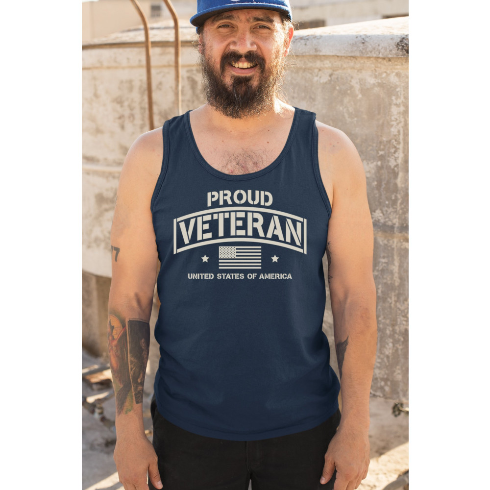 "Proud Veteran" shirt featuring bold design and American flag. Perfect for Memorial Day, Veterans Day, and everyday patriotism. High-quality and comfortable.