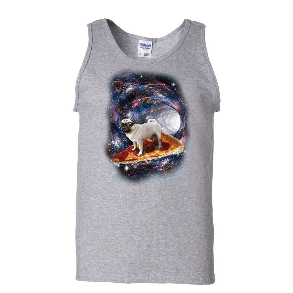 PUG SPACE PIZZA SURFER tank top weird goggles galaxy dog lovers sleeveless gray